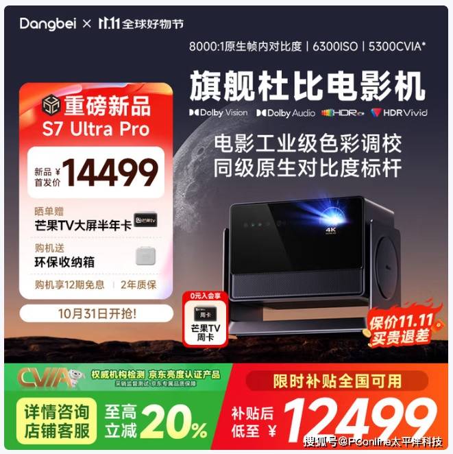 眼下入手当贝S7 Ultra Pro,还能赶上国补政策和双十一的红利,让高端体验的门槛更亲民,国补价仅需12499元,对追求高品质家庭影院的用户来说,这个价格能拿下5300 CVIA亮度+8000:1对比度的旗舰机型,性价比堪称诚意满满。