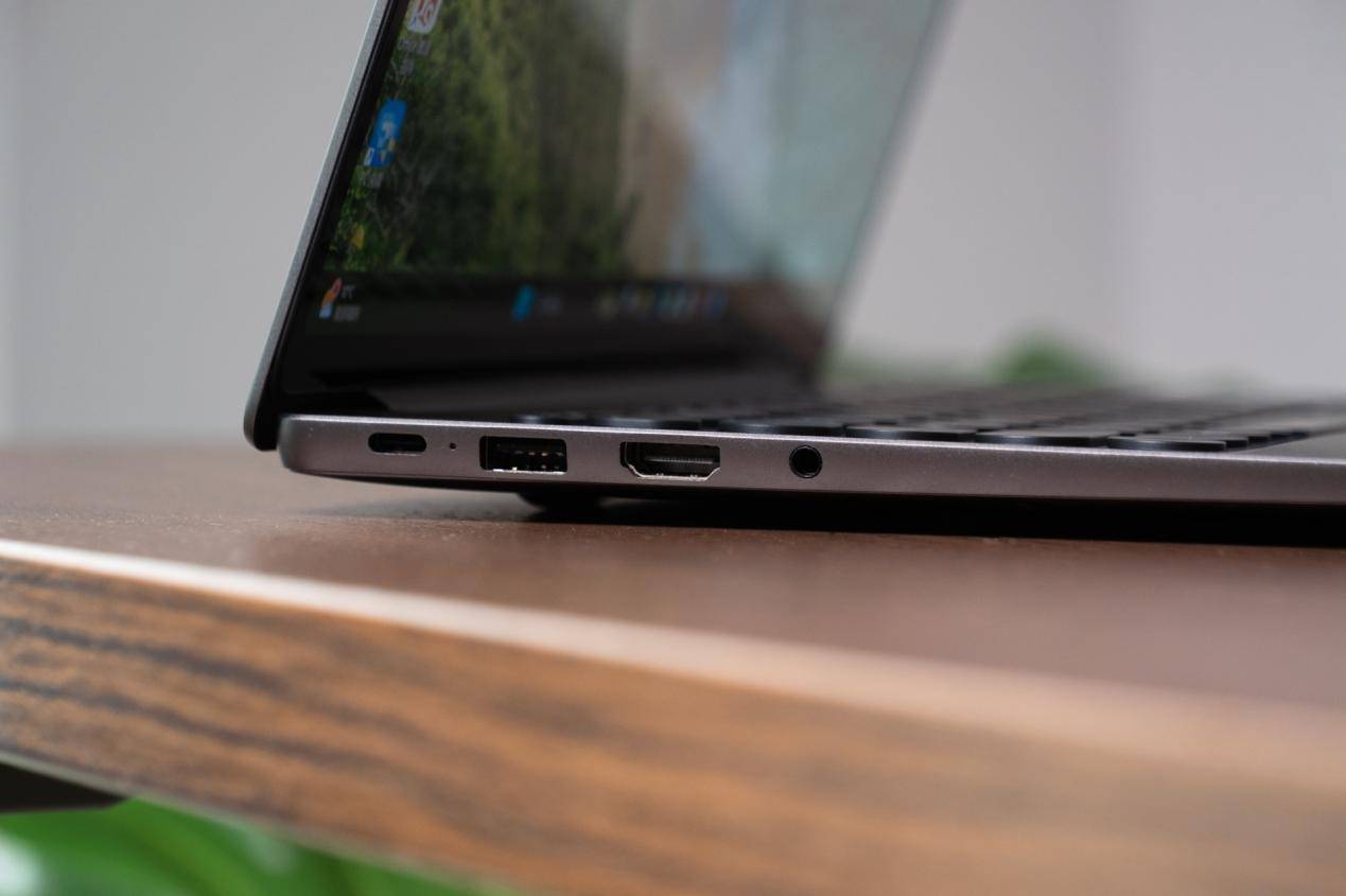 机身左侧提供了一个 USB-A、一个 USB-C、一个 HDMI 和一个 3.5mm 音频口。