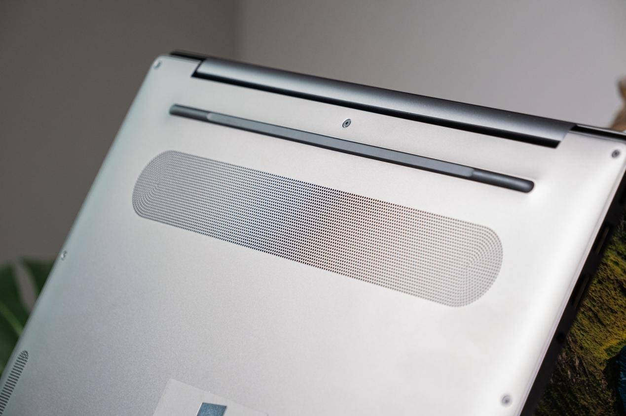 为确保性能持续稳定释放,MateBook 14 配备了鲨鱼鳍双风扇散热,并在 D 壳底部设计了近 5000 个波点式进风孔,与键盘视觉语言一脉相承,构成了高效的散热风道。实测在高负载场景下,机身仅维持体感温热,风扇也控制在非常低的噪音水平,确保了一个专注而不打扰的工作环境。