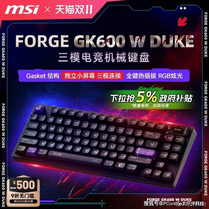 总而言之,微星GK600 W DUKE龙爵机械键盘用独立小屏幕满足了颜值与个性,用Gasket结构和星黛紫轴提供了越级手感,用三模热插拔保证了全能与自由。在双十一的优惠加持下,它无疑是300-400元价位段里最值得考虑的“六边形战士”。