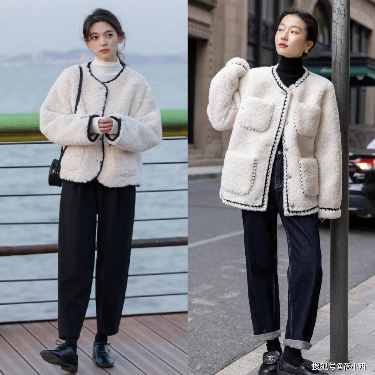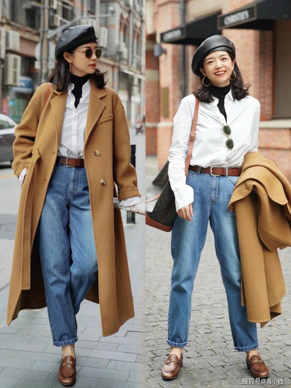 款式上,中高腰的设计最讨喜,轻轻一提就能拉高腰线,上面搭配一件短羊羔毛外套,结合九分长度的牛仔裤露出纤细脚踝,搭配小皮鞋,高级感就自然而然地出来了。