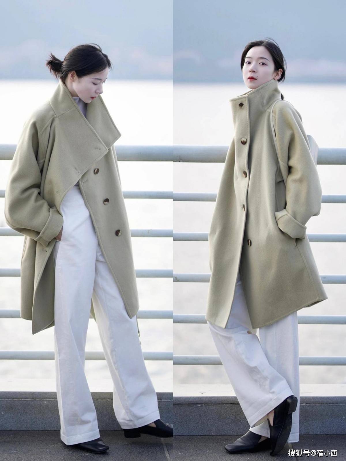 在一众基础色中,豆绿色大衣堪称今年秋冬的“黑马”,它打破了秋冬穿搭的沉闷感,以清新淡雅的色调成为街头一道亮丽的风景线。豆绿色介于绿色与灰色之间,饱和度适中,既不会过于张扬,又能在基础色中脱颖而出,自带温柔治愈的气质。