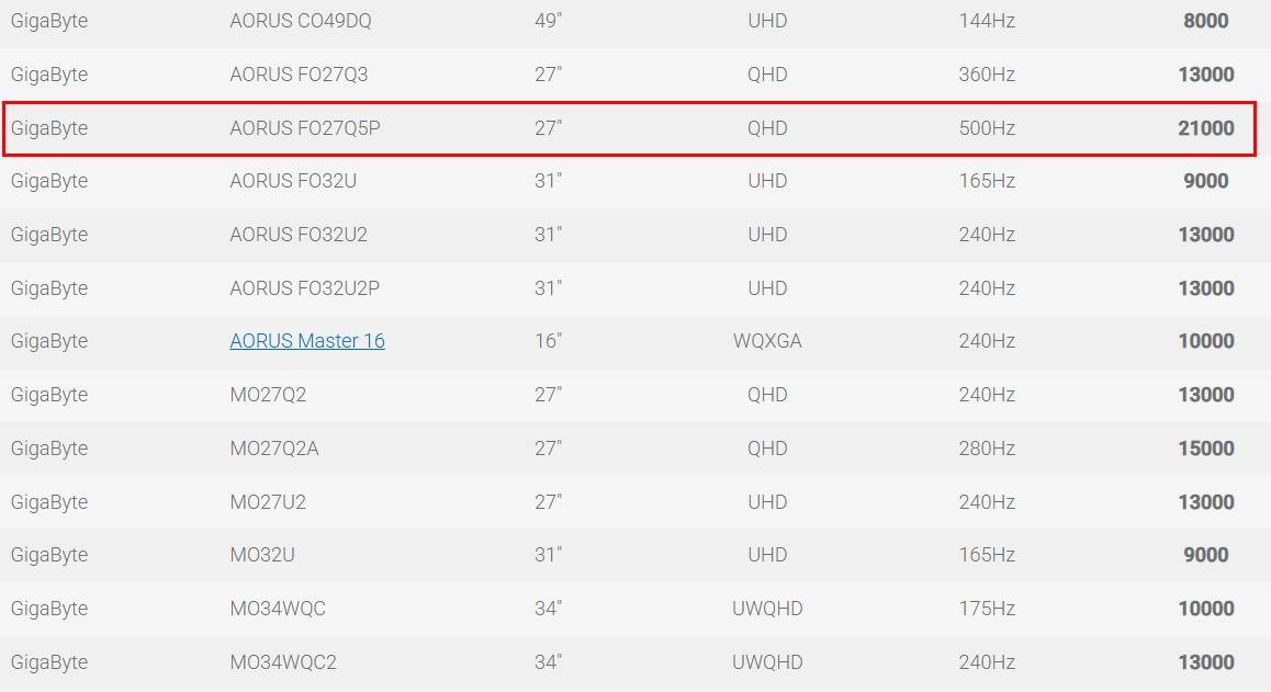 当然,AORUS FO27Q5P最引人注目的特性,还是高达500Hz的超高刷新率,这代表了目前OLED显示器领域的顶尖水准,也是大多数玩家所能感知到的极限。