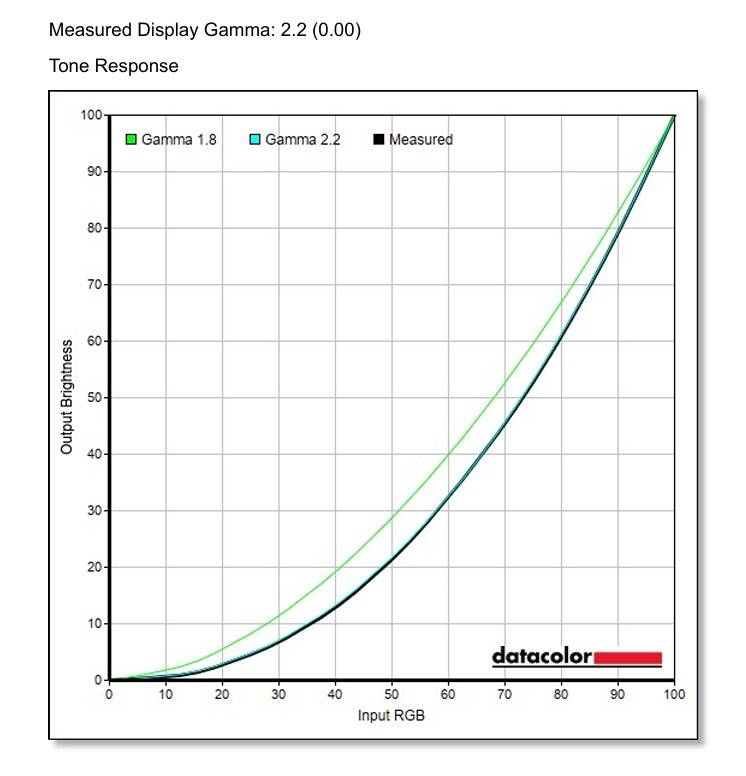 在伽马曲线测试中,AORUS FO27Q5P的表现堪称完美。实测的伽马曲线与标准的Gamma 2.2曲线几乎完全重合,这意味着显示器在默认状态下就能提供精准的光影层次和色彩过渡。