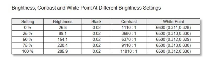 色温方面,显示器在不同亮度设置下的白点表现都非常稳定,在 6500K 至 6600K 之间浮动,提供了高度一致的视觉观感。