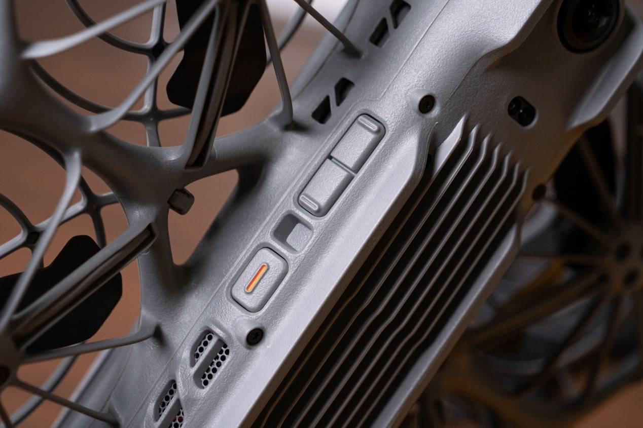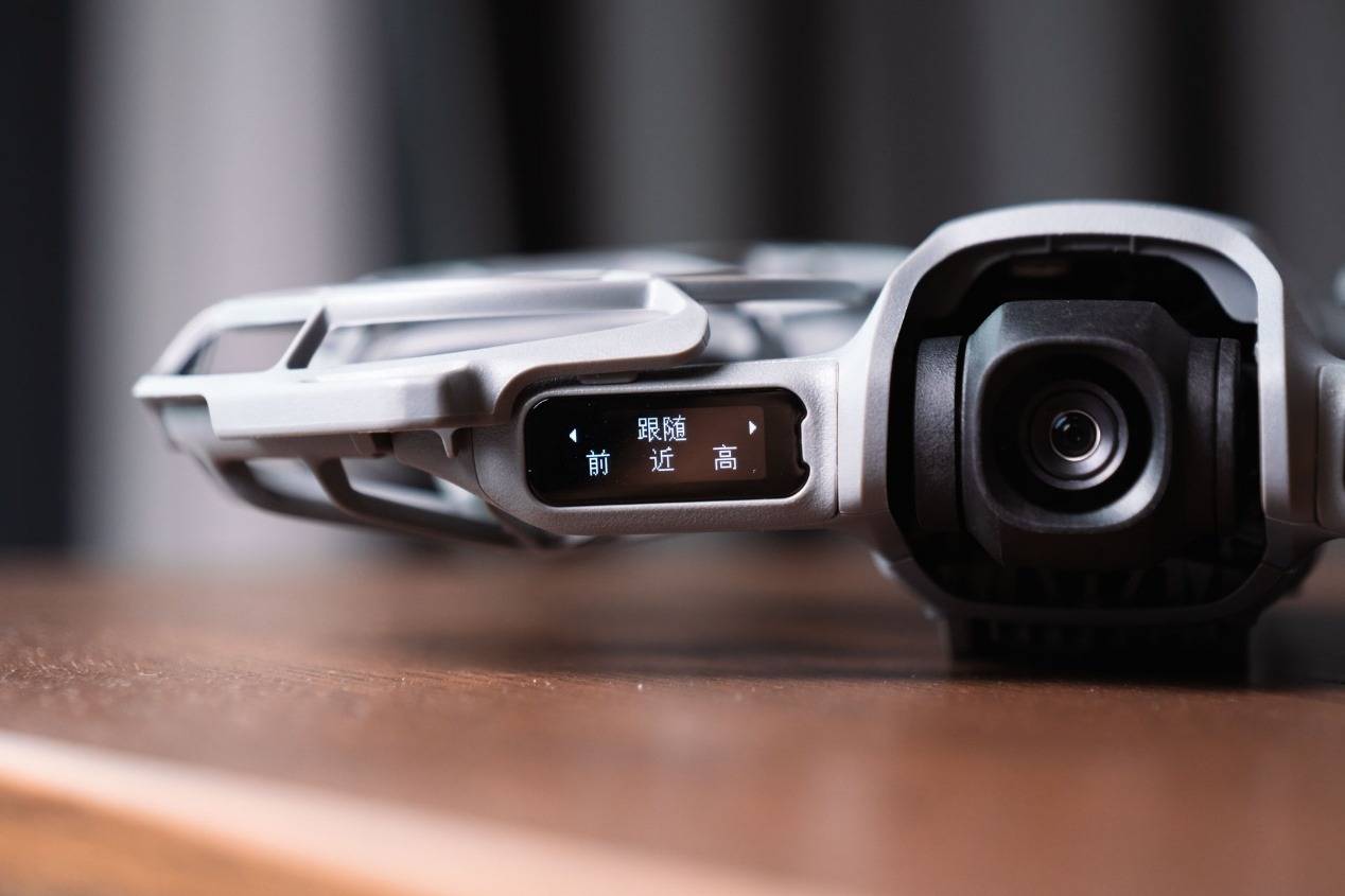 它依旧支持掌上起降,而且起飞按键和模式切换键从上一代的顶部移到了机身侧面,搭配新加入的小屏幕,单手操作逻辑更流畅,无需低头看手机即可完成飞行模式确认与切换。