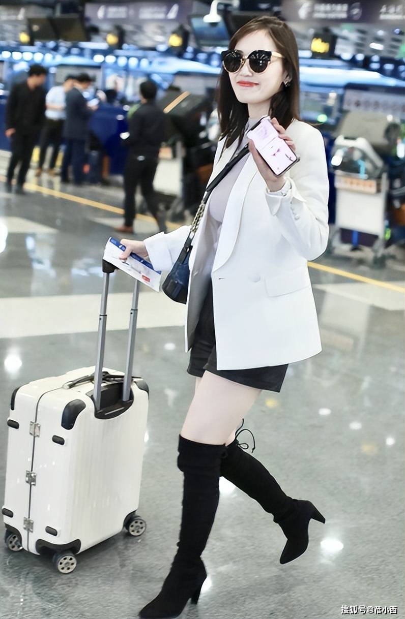 再看马蓉这套机场搭配,是“轻熟风通勤”与“性感露肤”的巧妙融合,既有职场利落感,又藏着巧思小心机。上半身选了一件白色oversize西装,垂坠面料自带高级感,宽松版型弱化了通勤装的严肃,反而衬出松弛的气场,内搭裸色打底衫,可以修饰她的曲线,中和了西装的厚重,让造型更轻盈。