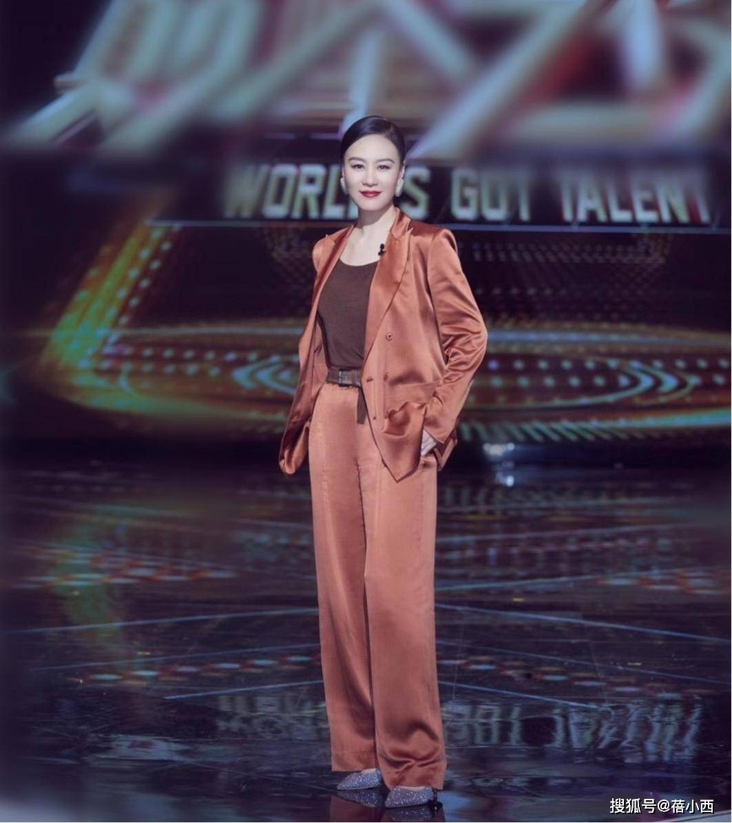 与厚西装外套相比,身上所穿的这件面料较为轻薄,而且摸上去十分光滑,关键是在自然光下也有光泽感。这款外套比较适合初秋时出门穿,现在的话,肯定要选厚款了,毕竟有的地方温度只有十来度。如果想穿出简约感,那么外套面料所融入的颜色就不宜过多。邬君梅身上的西装是纯色面料,并且极具挺阔感,视觉上就避免了呆板。