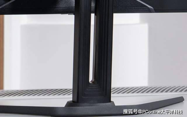 让我们先从AORUS FO27Q5P的支架看起,为了确保桌面上的稳定性,AORUS FO27Q5P采用了稳定性极佳的V型底座,并且使用了大量的金属材质。