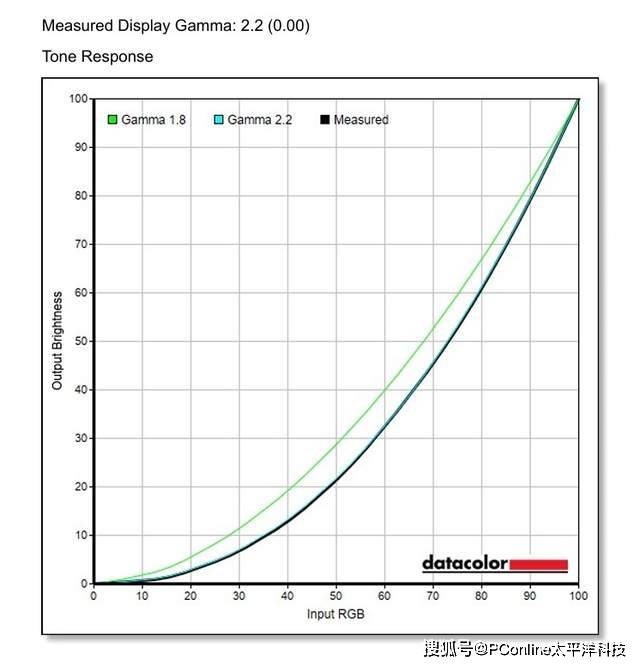 在伽马曲线测试中,AORUS FO27Q5P的表现堪称完美。实测的伽马曲线与标准的Gamma 2.2曲线几乎完全重合,这意味着显示器在默认状态下就能提供精准的光影层次和色彩过渡。
