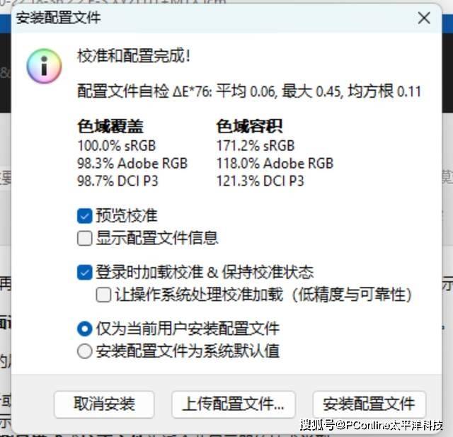 除此之外,我们还加测了显示器的色域容积表现,而AORUS FO27Q5P的表现同样极为优秀。可以达到171.2%的sRGB色域容积,118.2%的Adobe RGB色域容积和121.3%的P3色域容积。