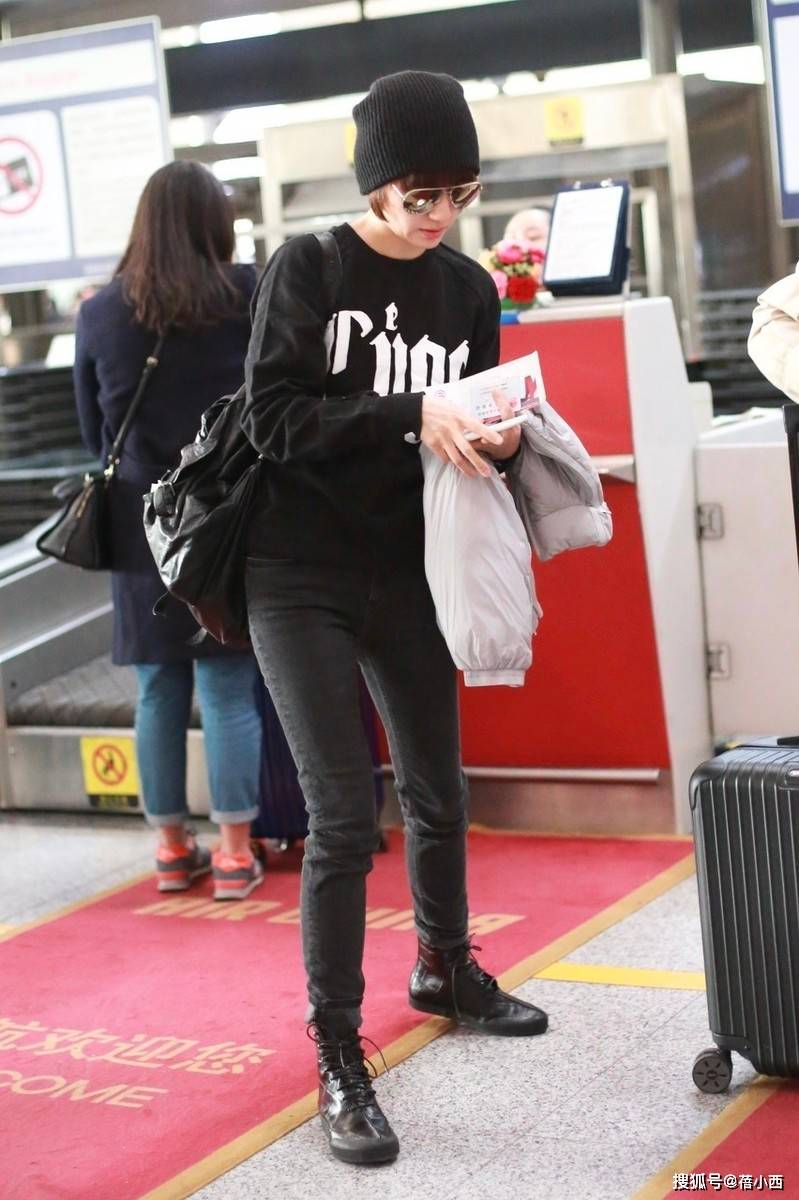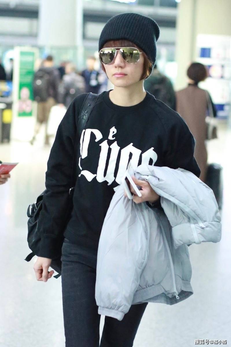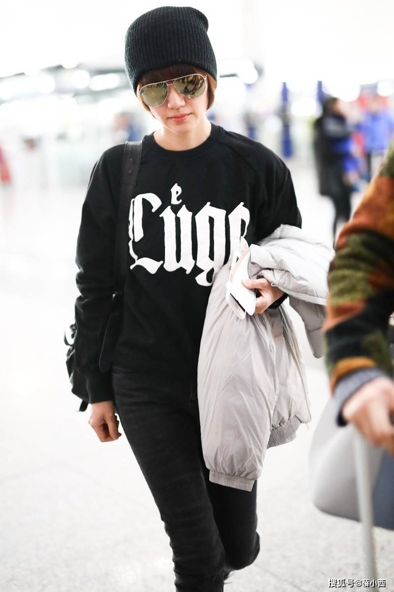 当然了,配色的比例并不是固定的,我们需要以基础色为主,然后再加入淡一点的颜色,最终确保全身不会超三色。黑白灰的组合深受广大女性喜爱,因为这么穿永远不用担心出错。袁泉的穿搭其实也符合这一想法,上身穿的卫衣融入了黑白色,腿上所穿的牛仔裤是深灰色。这么一来,我们就能轻而易举穿出层次感。