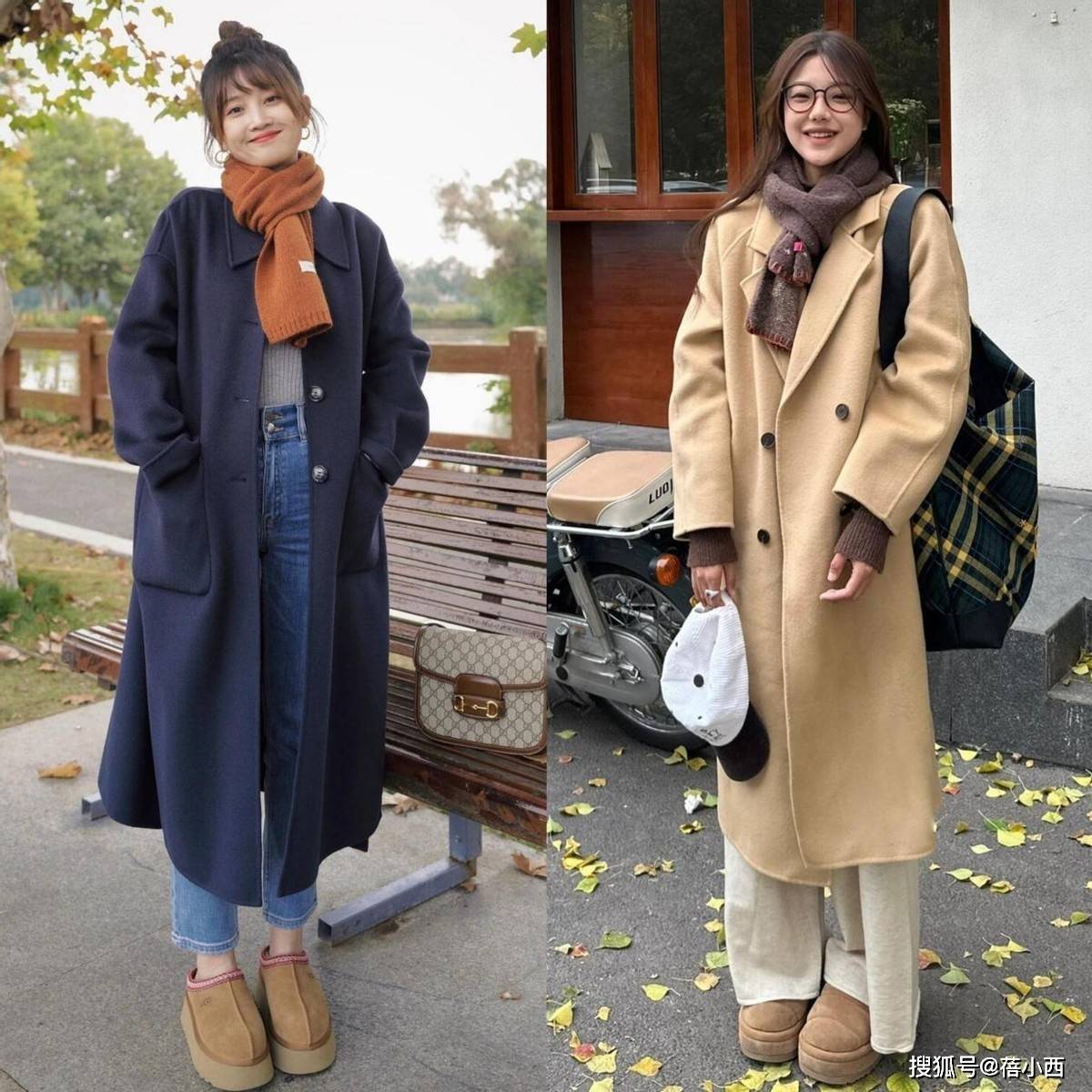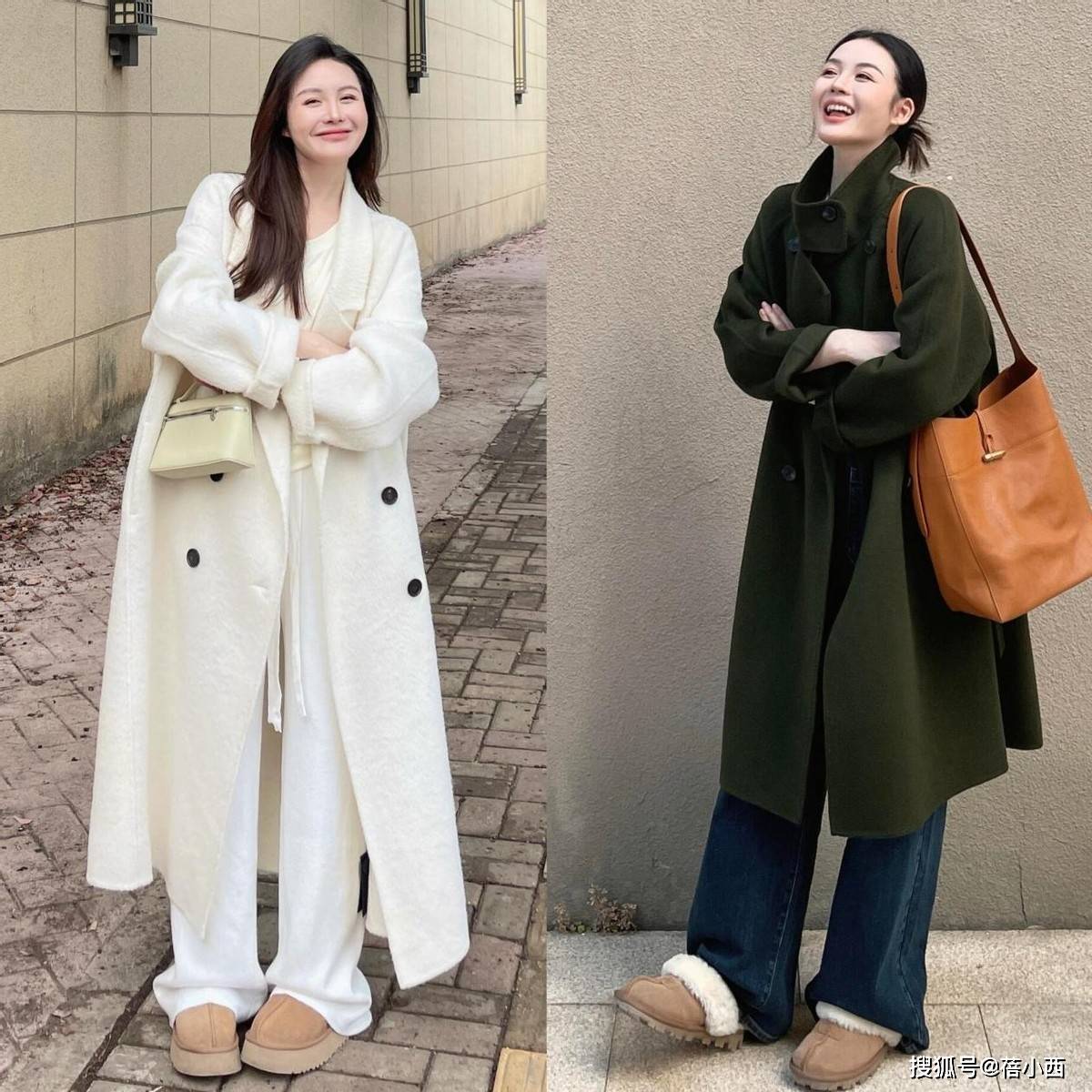 到了深冬,气温骤降,雪地靴就成了大衣的最佳保暖搭档,往年总觉得雪地靴笨重显臃肿,搭配大衣会拉低高级感,但今年的雪地靴早就不是“土气”的代名词了,简约款、短筒款的雪地靴,反而能和大衣碰撞出温柔又实用的火花。短筒雪地靴能露出更多腿部线条,不会像长筒款那样显得拖沓,搭配大衣时,既保暖又不会破坏整体的利落感。