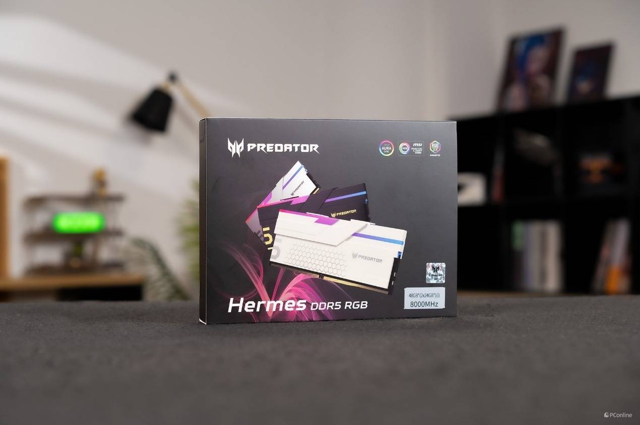 内存部分,我们采用的是宏碁掠夺者Hermes冰刃 DDR5 8000 48GB套装,它是宏碁掠夺者专门针对IPO所推出的产品,采用了最新一代的海力士3GB M-Die内存颗粒,1.45v的电压也低于同频率旗舰内存,频率8000MHz,时序CL38,支持Intel XMP3.0。