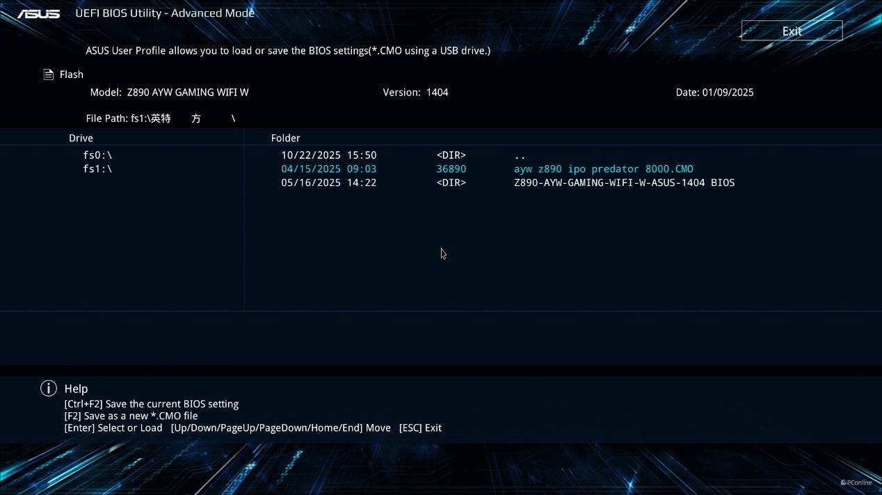 而使用IPO也非常简单,玩家选购指定的处理器+主板+内存等IPO配件套装,进入BIOS读取Intel技术团队提供的预设文件并保存设置即可。以我手中的华硕Z890 AYW WIFI W主板为例,首先根据自己的主板型号去主板官网下载最新的BIOS,以保证兼容性。