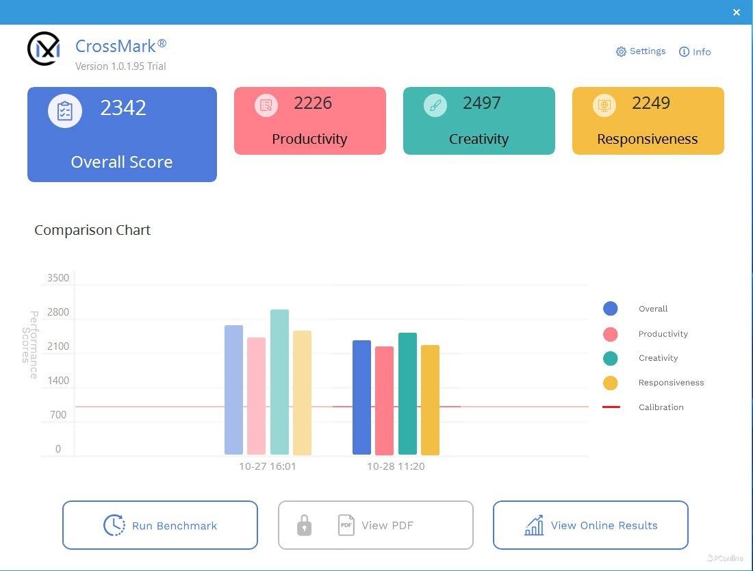 最后给大家测试一下综合性能方面的表现,这里我们直接用CrossMark进行测试,它是一款综合测试软件,能够很好地反映平台的生产率、创造性以及反应能力,同时还支持 Windows、MacOS 等多个平台运行。这次我们使用的是BPN专业版本,测试出来的数据比免费版本的更准确。