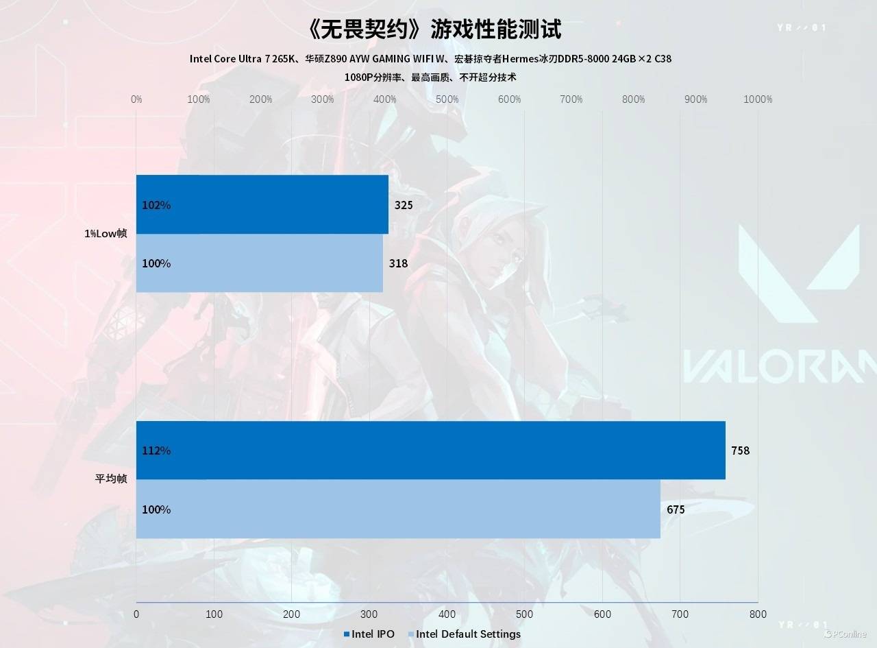 另一款FPS游戏《无畏契约》也非常给力,在IPO的加持下,平均帧能够获得12%的提升,这样的性能释放相当于U7变U9了。