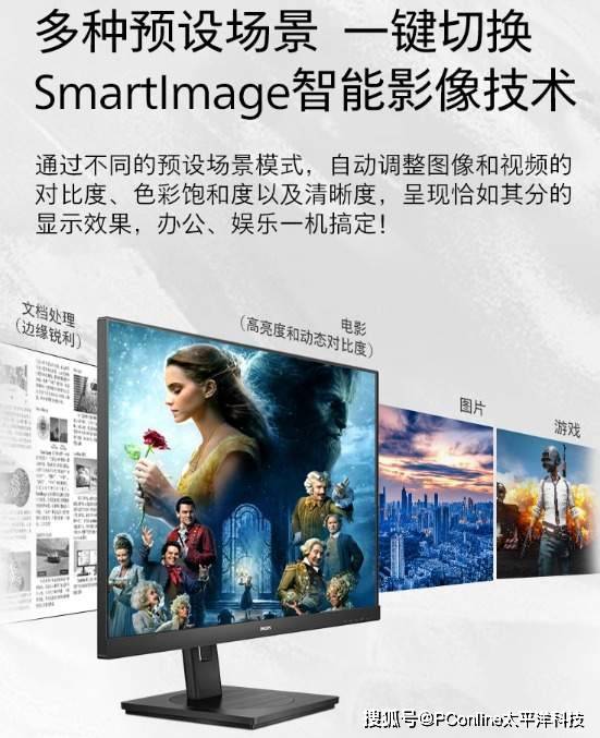 SmartImage智能影像技术让显示器学会了随机应变,它能根据不同场景自动调整参数,办公模式下增强文字清晰度,让邮件与报表的字迹更易辨识;娱乐模式下提升色彩饱和度,让电影画面更具张力;阅读模式则降低亮度与对比度,模拟纸质阅读的舒适感。