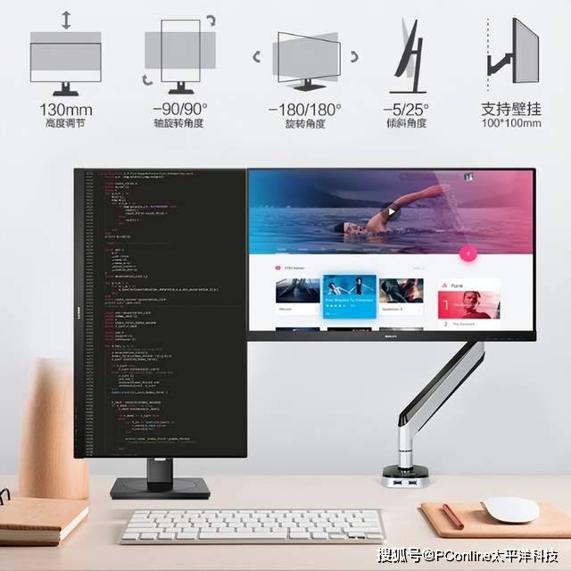 人体工学设计与空间利用的巧思,更显对办公场景的深刻理解。显示器支持上下升降、前后倾斜与90°竖屏旋转,程序员写代码时竖屏显示能看到更多行数,设计师对比图片时横屏摆放更方便,不同身高的使用者都能找到舒适的观看角度,久坐办公也能减轻颈椎压力。三边微边的设计让多屏拼接成为可能,财务人员可以左右分屏查看报表与数据,视频剪辑师能同时摆放时间轴与素材库,中间几乎没有拼接黑线的干扰,效率提升立竿见影。