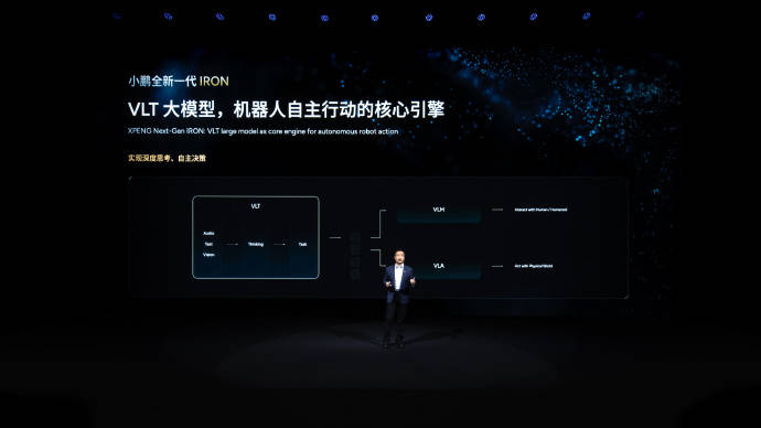 全新一代人形机器人 IRON 拥有 3 颗图灵 AI 芯片,达到2250TOPS;搭载物理世界大模型,构建 VLT+VLA+VLM 高阶大小脑能力组合,可实现对话、行走、交互等高阶智能。