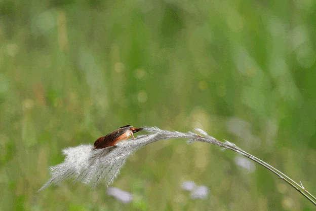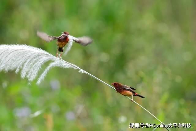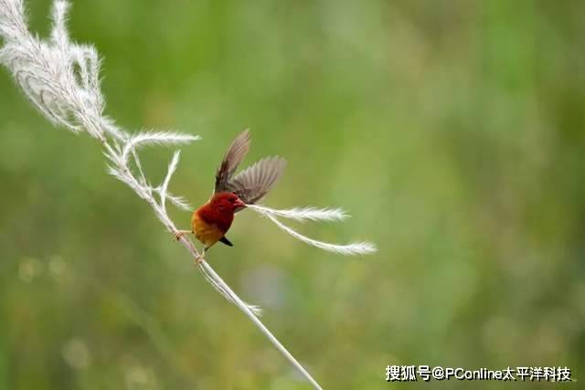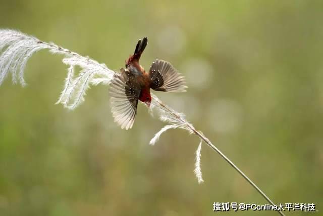 草莓成精了!本次实地探索最重要的拍摄对象——红梅花雀,拉丁学名Amandave amandave,国内主要分布在云南和海南,属留鸟。适合拍摄的月份主要为夏末秋季,发情期的雄鸟会逐渐变得鲜红艳丽并且穿梭于芦苇、稻田中挑选适合筑巢的材料,而在这个瞬间,能观察到它的每一次振翅之美。上方为使用富士X-H2S单次按下快门,一秒钟机内记录的40幅画面示意图。下方则是通过PS等后期软件,图片堆栈后,制作的雄性红梅花雀拔草筑巢动态GIF图。