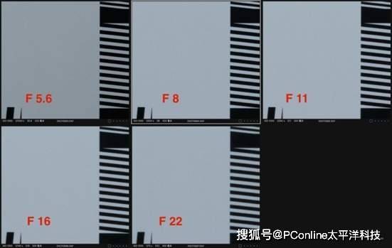 大家可以仔细查看这枚镜头在各个光圈下的暗角情况,经过仔细对比,仅在全开光圈F5.6时,有几乎不可见的阴影,对拍摄不会有任何干扰。