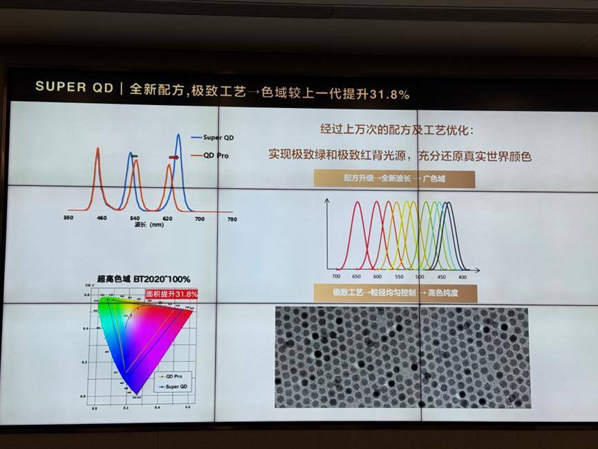 我们过去曾说过,现在的QD-Mini LED电视,未来可以通过量子点的材料升级加上改善CF滤光片的方案,来大幅提升色域表现。但实际上从TCL介绍的情况来看,SQD主要是来自于配方和工艺的改进,而不是材料和CF的变化。所以从这个角度而言,在达到类似高色域的方案中,SQD或许是成本相对更低,同时也更易于下放到其他定位产品上的一个技术。