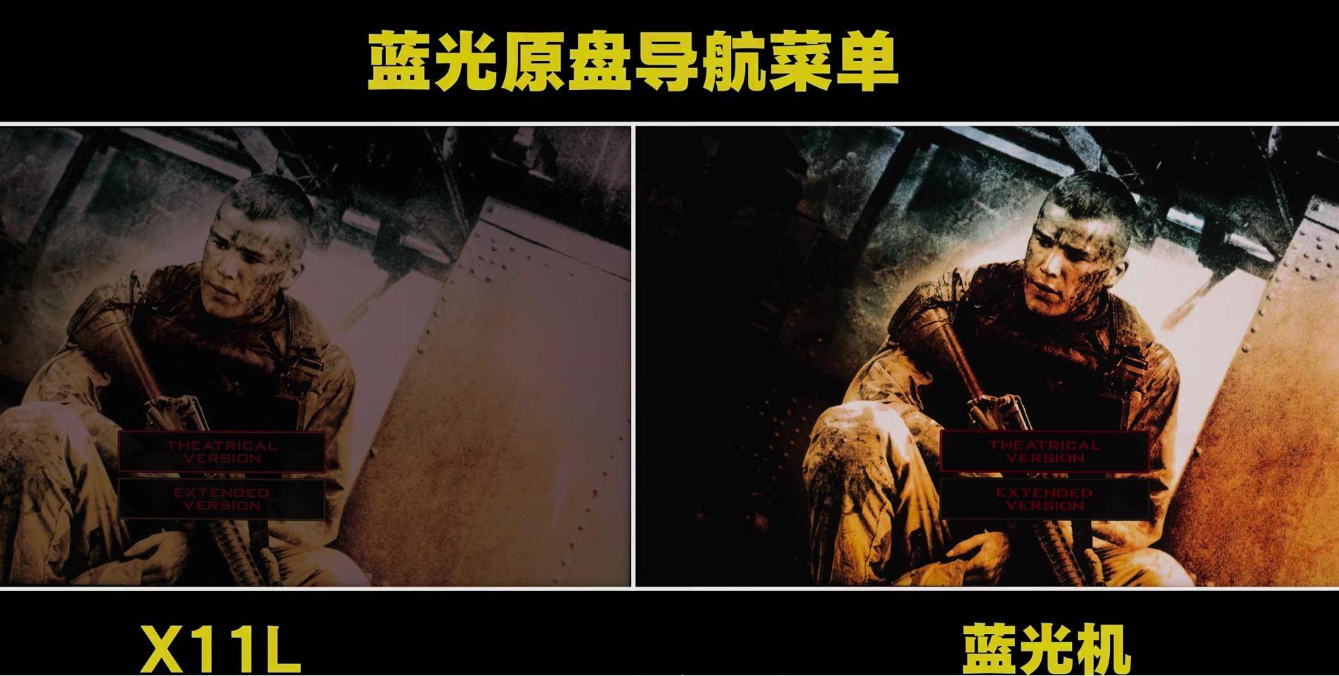 如果说稍微有一点不同的,那就应该是在蓝光导航菜单上,少部分蓝光原盘可能X11L的菜单色彩和蓝光机有区别,导致我们在操作时觉得有一些不方便。不过目前X11L蓝光原盘导航这个功能还只是Beta版,相信正式版放出的时候,这些问题应该都可以得到解决。需要特别说明的是,此差异仅存在于菜单界面,核心影片播放环节完全正常。同时,X11L的菜单系统基于Android OSD方案开发,具备更快的绘制速度与响应效率,相比蓝光机实际反应速度会更快,操作也会更流畅。