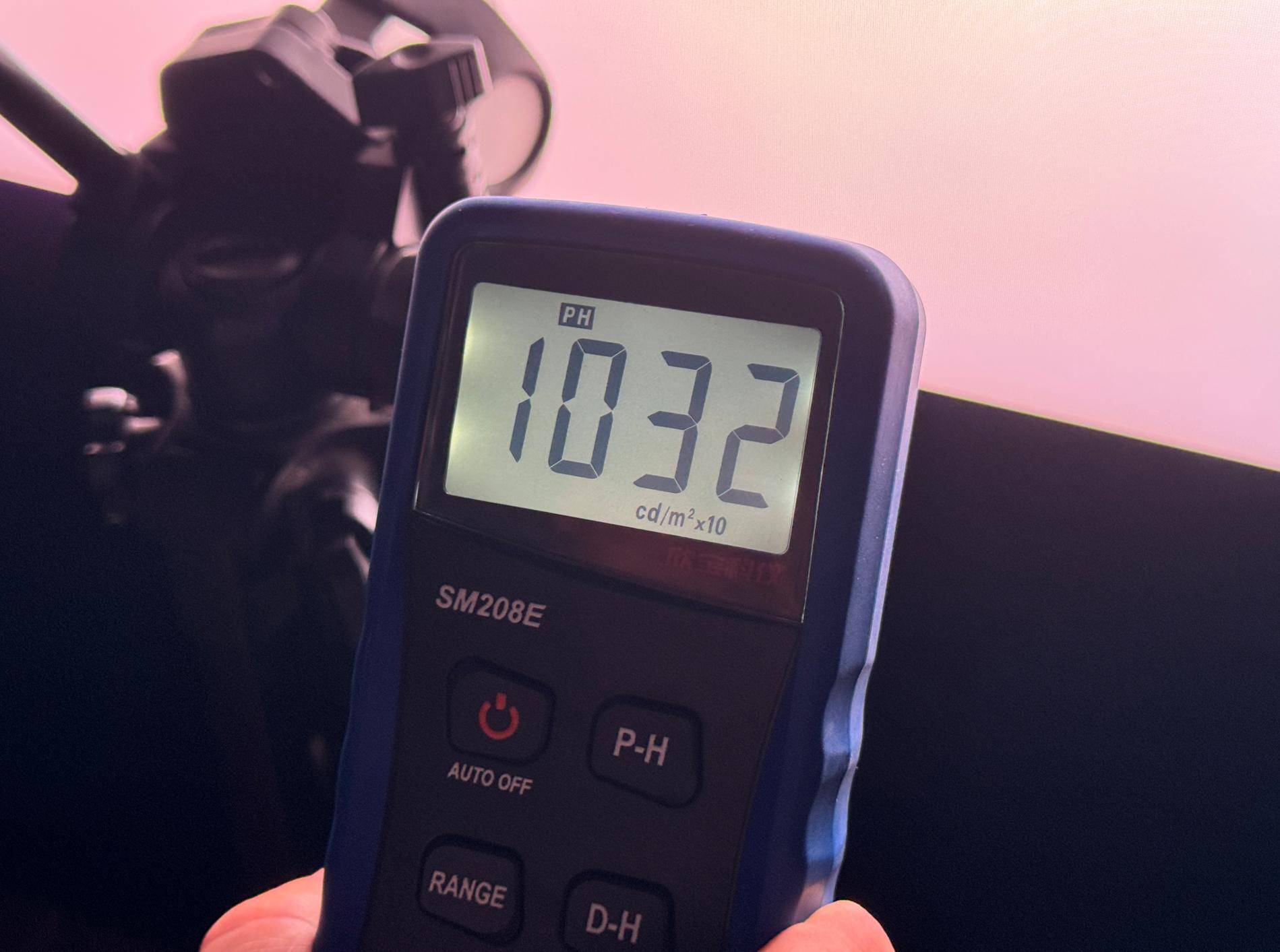 我们手头的98X11L,背光分区为20736个,官方宣传的峰值亮度为10000nits,这两项数据在国内同等级产品上,都处于领先位置。98X11L的原生对比度我们测试为6800:1左右,如果区域控光全开,对比度直接攀升到100000:1以上。在全白画面下,98X11L四边暗角非常轻微,没有看到脏屏的现象,亮度均匀性很不错。