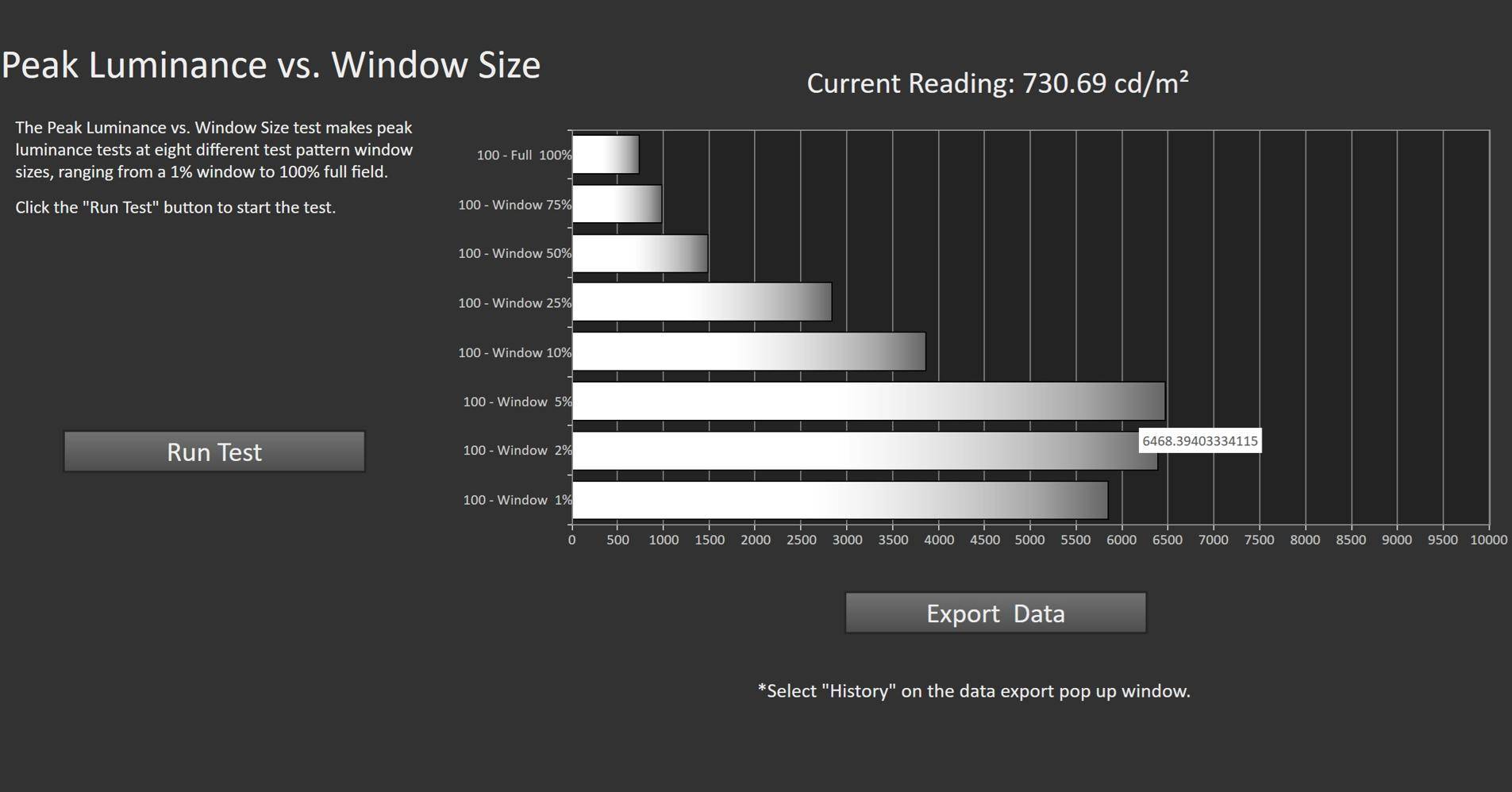 亮度部分,我们在标准模式以及5%的窗口下,测得98X11L最高亮度为10320nits左右。在其他模式下,IMAX模式亮度略高于Filmmaker模式。从我们在Filmmaker模式下测试的数据来看,稳定峰值亮度也接近6500nits,同时全屏亮度超过了730nits,这的确是现在最亮的液晶电视之一。