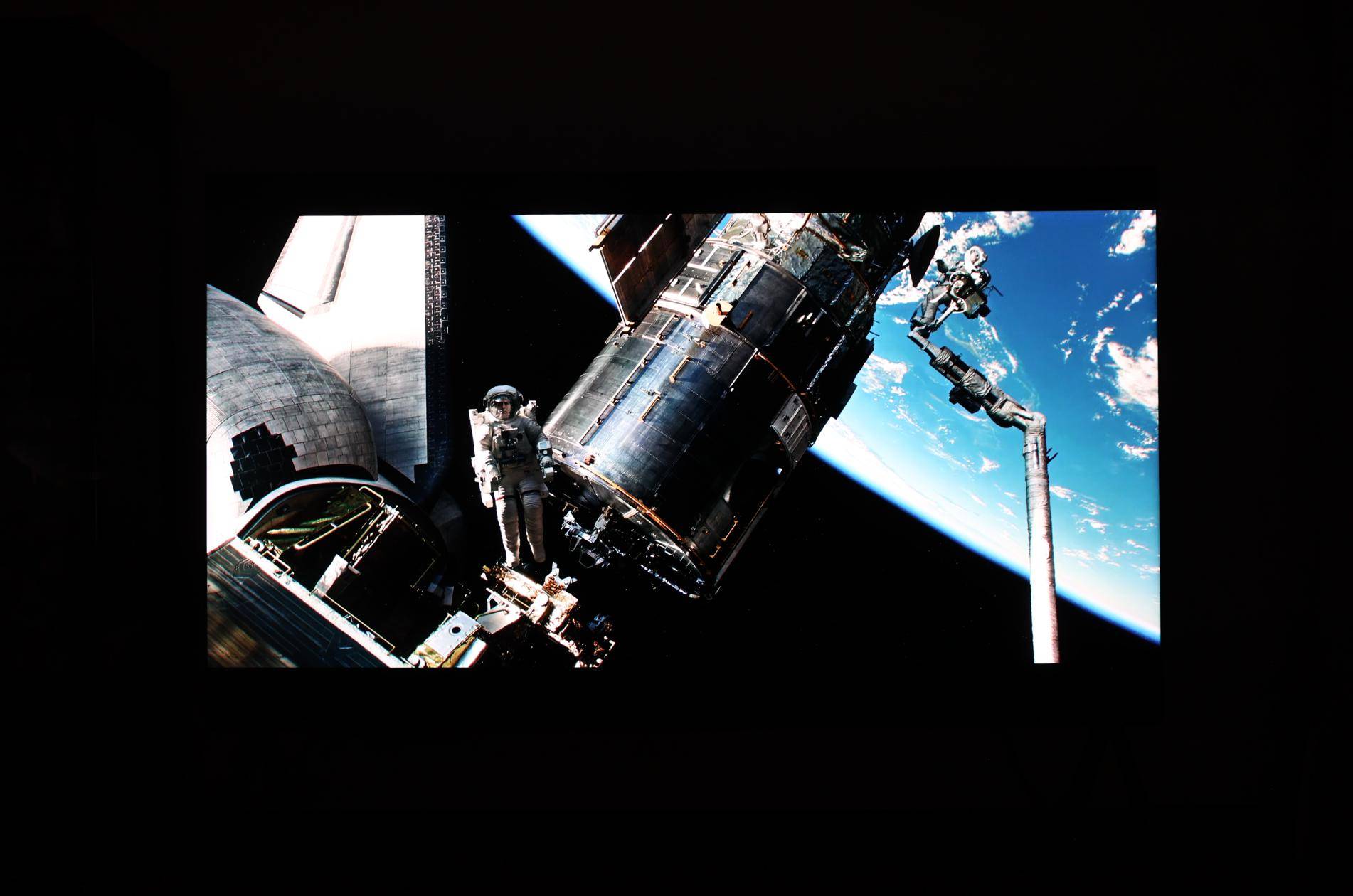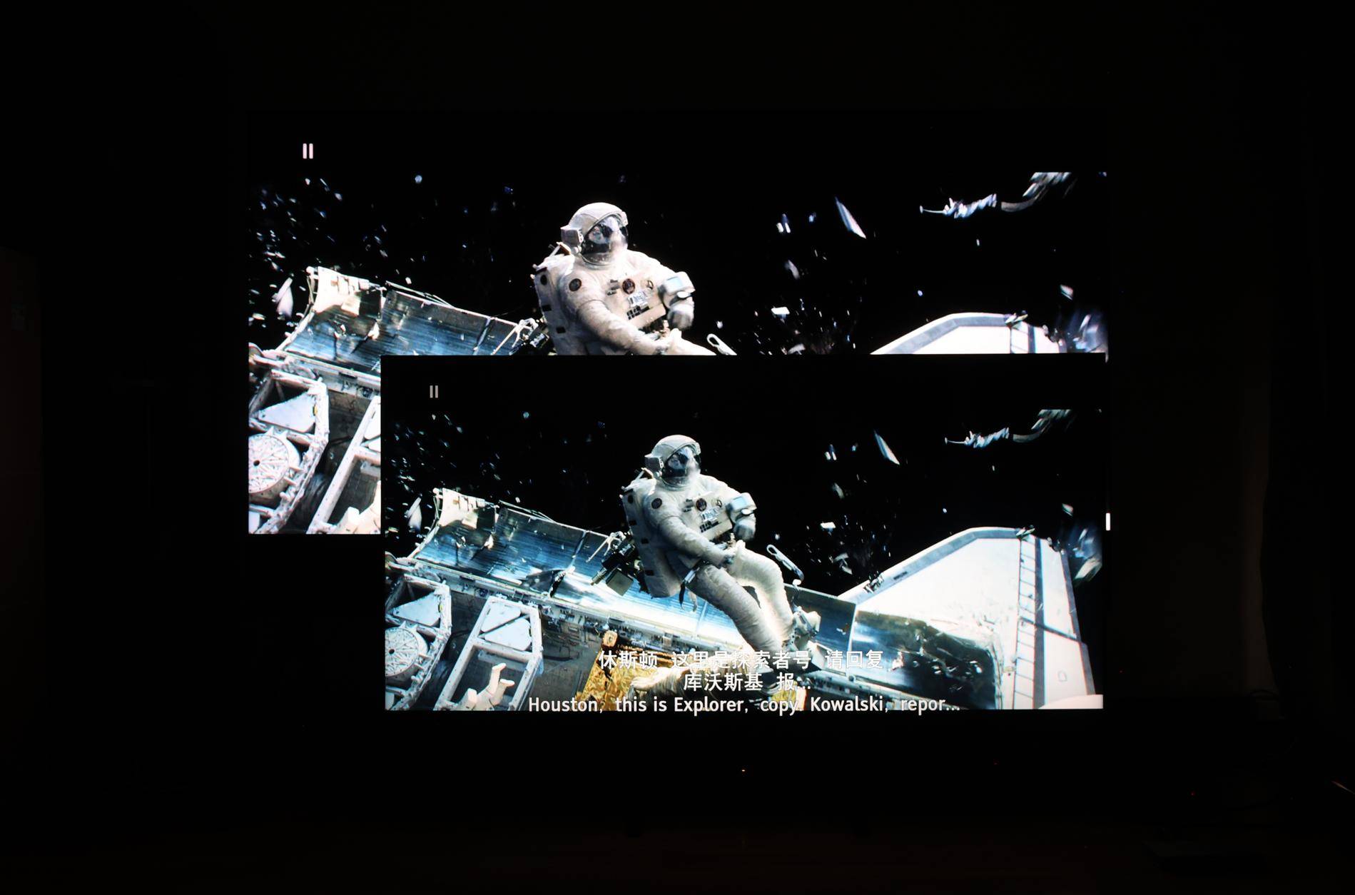 而在HDR电影视频中,像《地心引力》这样最高亮度不过800nits左右的影片,98X11L显示出了自己控光和对比度上的优势。星星和碎片的画面明显要比用来对比的Mini LED电视更清晰,而且星星亮度和层次感也要更强,这会令画面看起来更有质感。