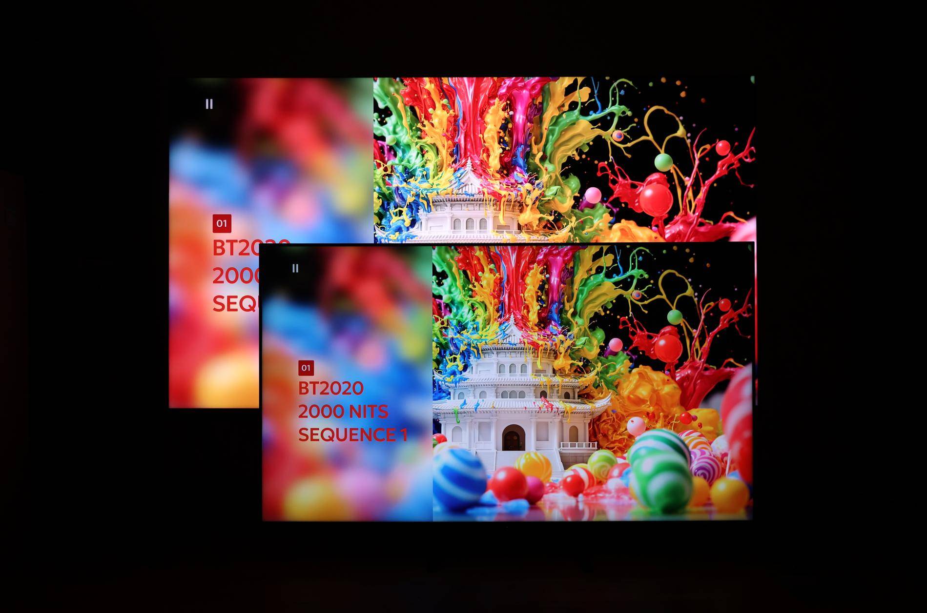 98X11L的BT2020色域覆盖率接近92%,再加上不用考虑串色等问题,所以在我们看到的所有视频场景中,它都能保持高色域。当然和RGB-Mini LED一样,这种优势主要还是在部分纯色场景中会明显一些;在其他场景中,98X11L针对饱和度更高的复杂色彩画面也会有帮助,色彩会显得更明艳一些,但相比纯色的提升可能不是那么显眼。另外98X11L比较好的地方是,它在色彩过渡上相比过去有着很明显的提升,在复杂色彩场景下,不同色彩之间看起来更自然更柔和。