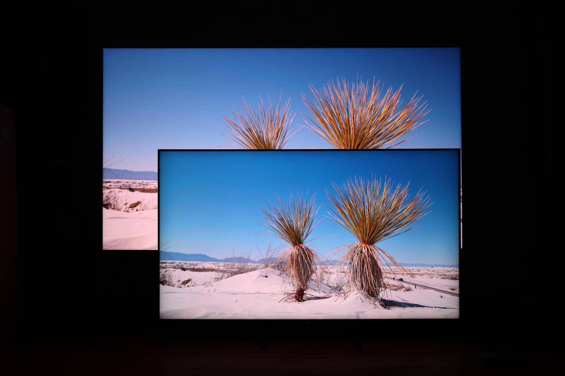 RGB-Mini LED电视的出现,在背光成本还没有明显降低之际,控光实际上会受到一些影响。比如目前三星115英寸的Micro RGB电视,控色分区大概在15000个,实际控光的背光分区则应该是在5000个左右,这已经算是多的了;其他厂商的RGB-Mini LED电视控光的背光分区数量,都不会超过4000个。所以和自家其他背光分区更多的电视相比,它的控光性能和对比度反而会受到影响。当然,这里我们就不去单独考虑厂商自己的算法和画质优化技术了。