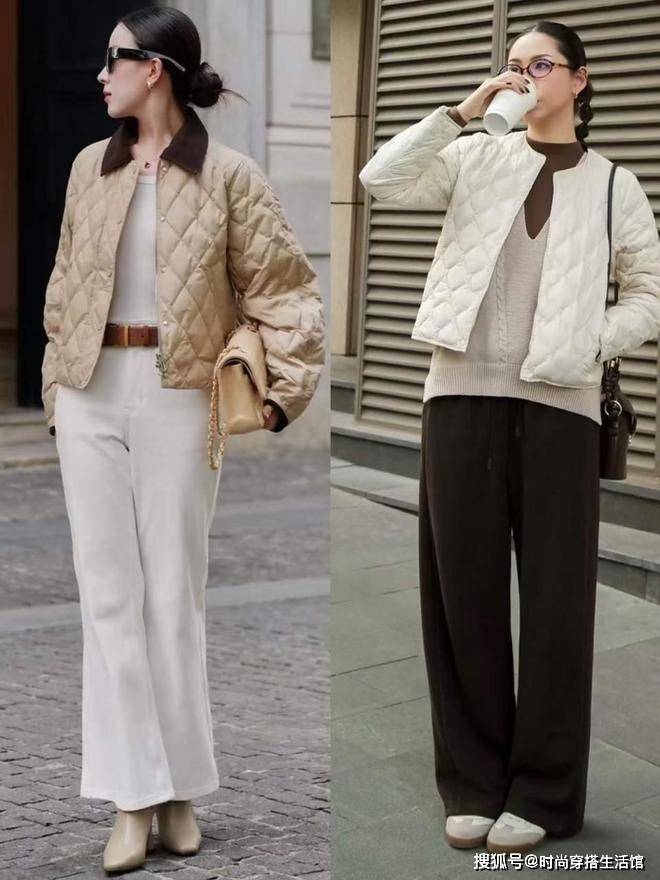 现在的流行奶奶棉服都会结合绗缝设计,这类特殊的剪裁设计能打破单调,避免穿出沉闷感和老气感,如果你选择单一的纯色棉服,会觉得太单调了,试试结合个性的菱格纹绗缝剪裁或者是格纹绗缝剪裁,都可以压低棉服的膨胀感,从而体现搭配的时尚度,直接提升我们的个人魅力,展现出设计感。
