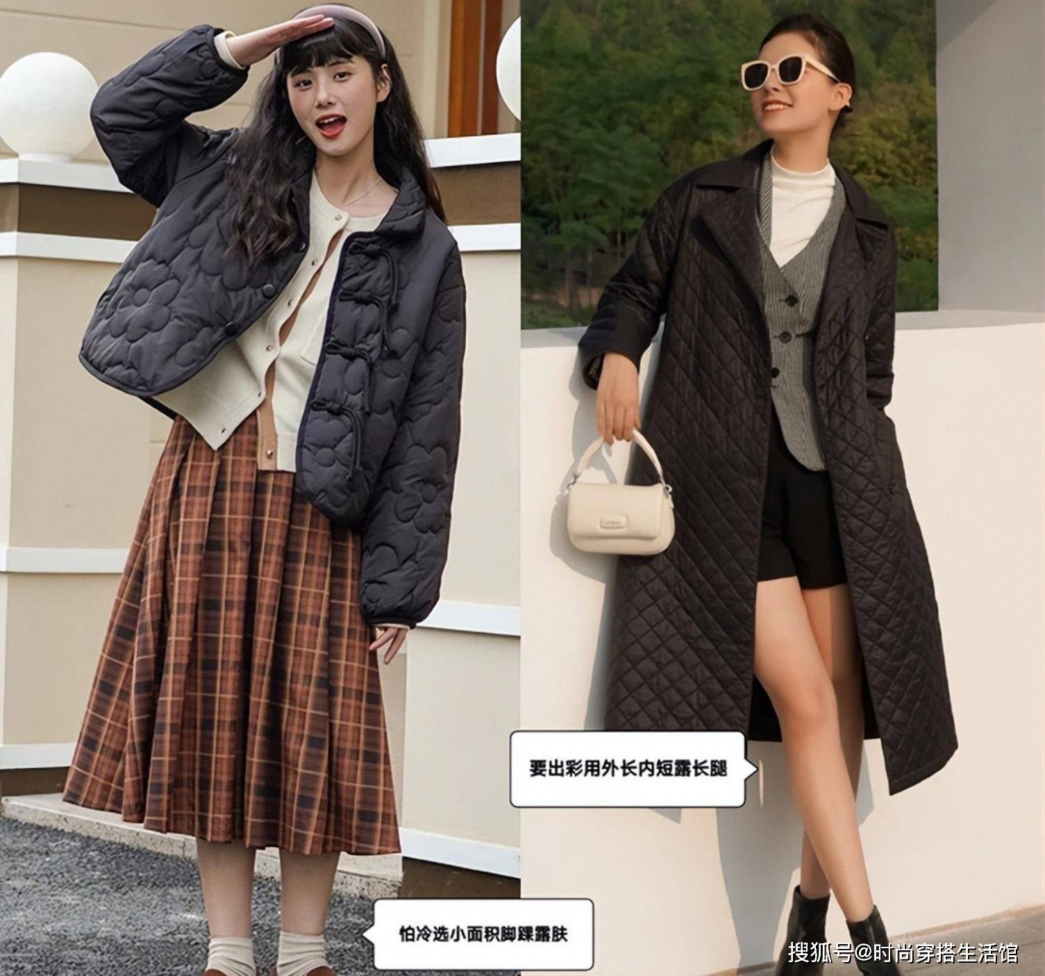对于喜欢在温暖与时尚间寻找平衡点的女性来说,适当的露出部分肌肤是关键。可选用"长度及膝"但"略高于脚踝"的长裙与短款奶奶棉衣进行组合,露出部分小腿,制造吸引目光的留白效果。