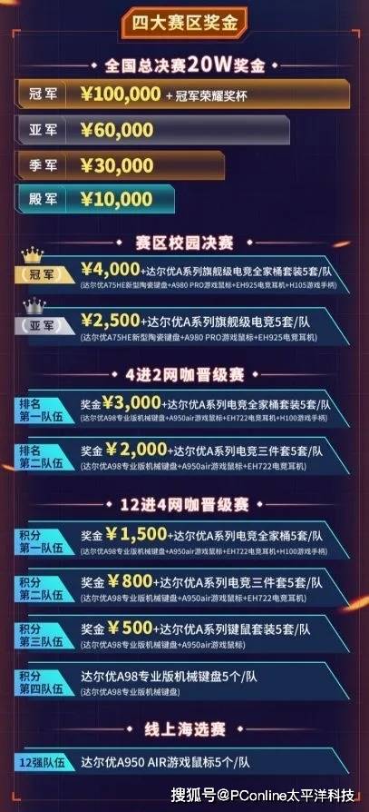 广州赛区:决战巅峰之地广州赛区计划于11月开赛,并作为达尔优高校电竞赛全国总决赛的举办地,迎来四大赛区的顶尖队伍在此决出总冠军。广州赛区本身也将汇聚广东地区众多高校的电竞强队,预计将覆盖中山大学、华南理工大学等名校,竞争势必空前激烈(具体以实际报名为准)。