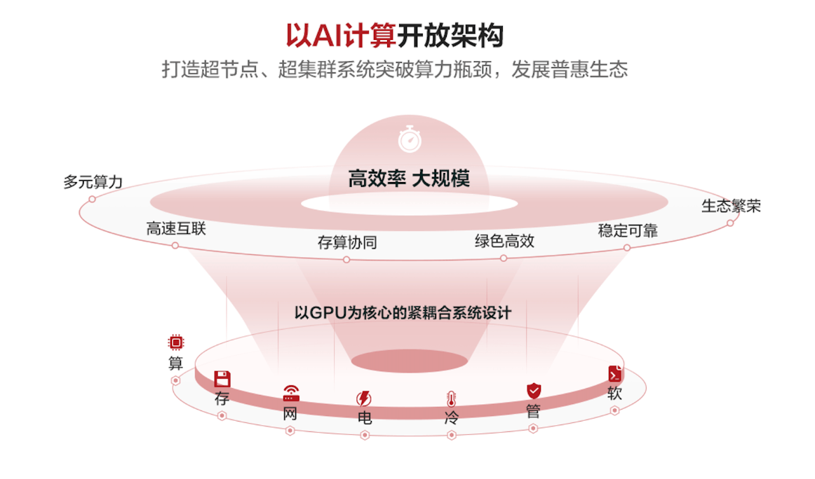 此外,scaleX640 超节点基于AI计算开放架构设计,适配支持多品牌 AI 加速卡,为用户提供更多灵活选择;全面兼容主流 AI 计算软件生态,适配优化 400+ 主流大模型,支持 AI 模型、业务应用快速无缝迁移与深度优化 。