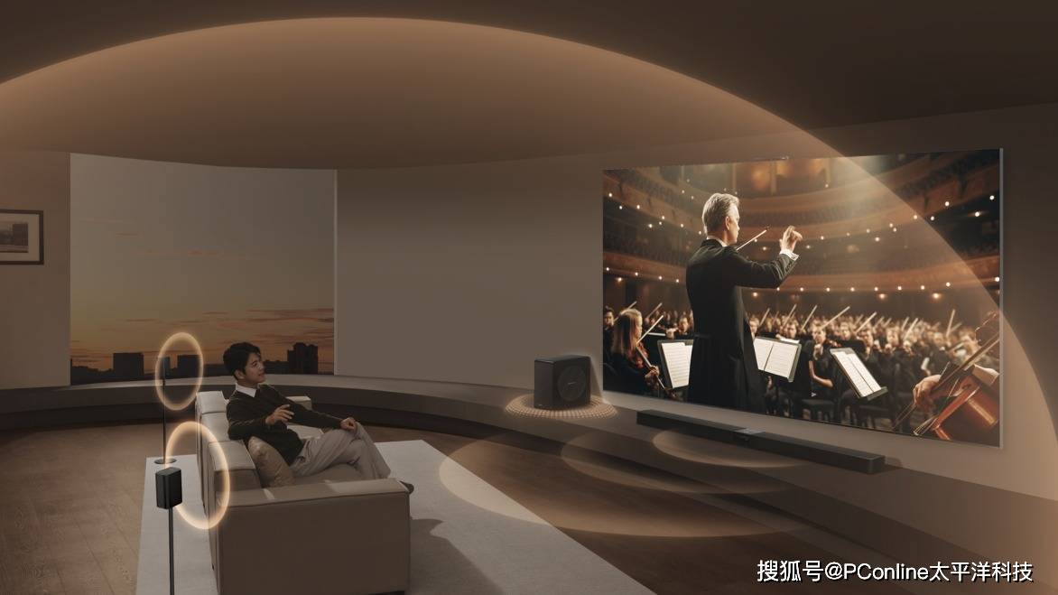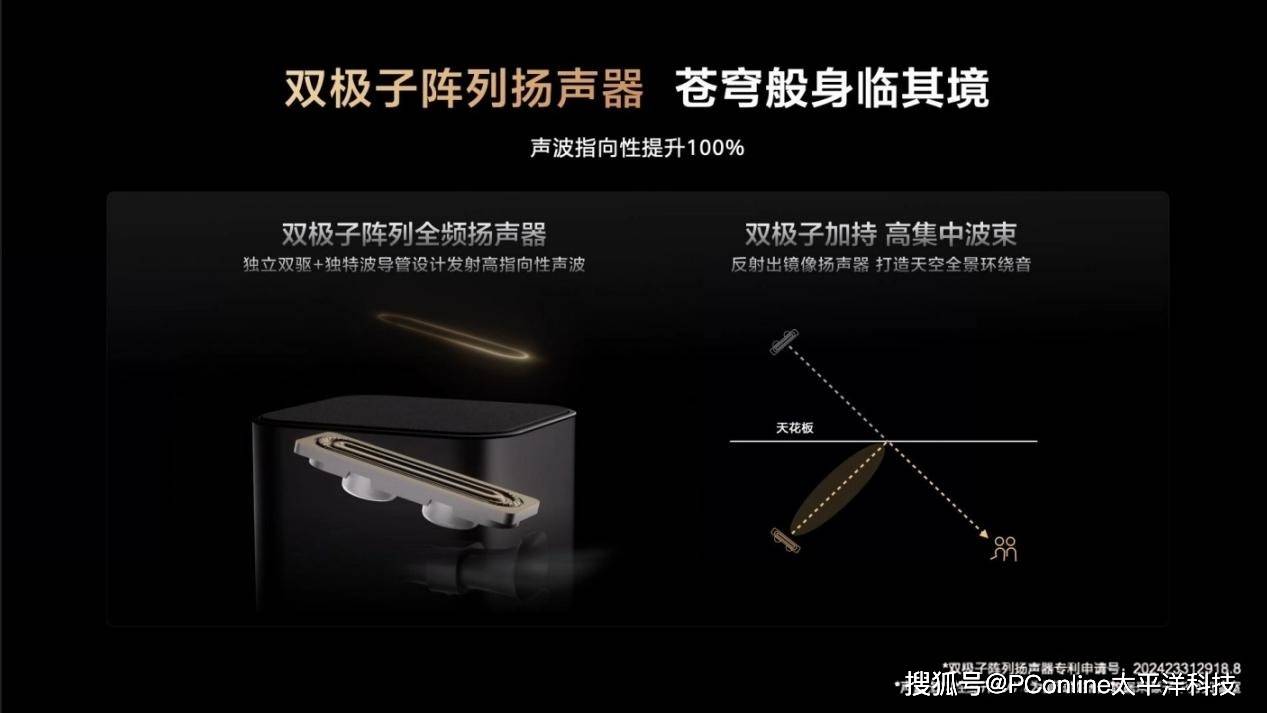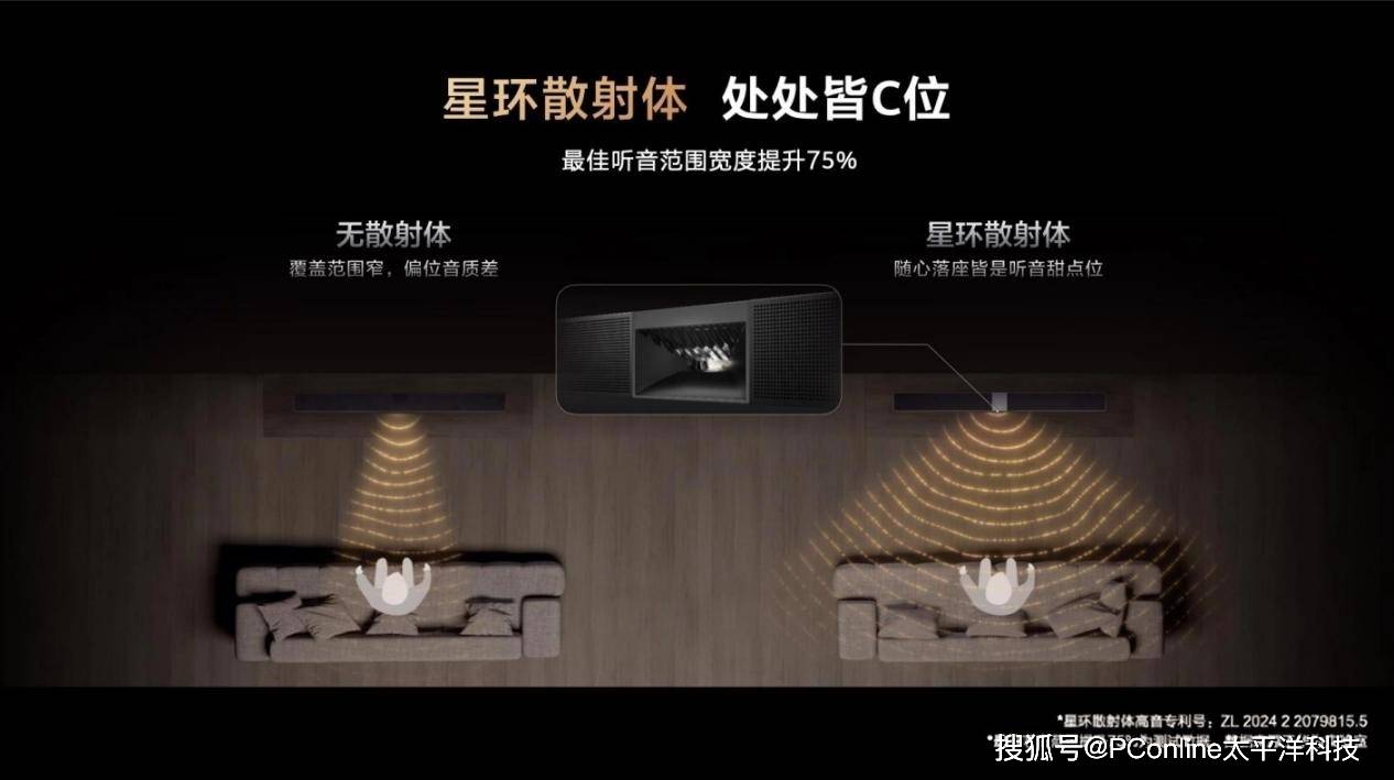 在实际应用表现方面,该技术显著提升了空间音频的还原能力,解决因高、低频声波段辐射角度差距,而导致听音范围窄的问题,最佳听音范围宽度提升75%。无论是坐在客厅的哪个角落,都能听到清晰、立体的环绕音,使电影中的飞船的飞行音效、雨声等环境音效得到更真实的呈现,这种技术为用户带来更具沉浸感的听觉享受。