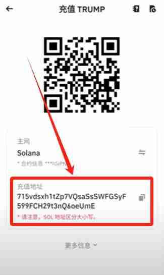 4. 获取币安的充值地址。登录币安平台,点击“资产”-“充值”,搜索您要充值的币种,例如TRUMP,确保选择与火币一致的网络(例如Solana),然后复制充值地址。