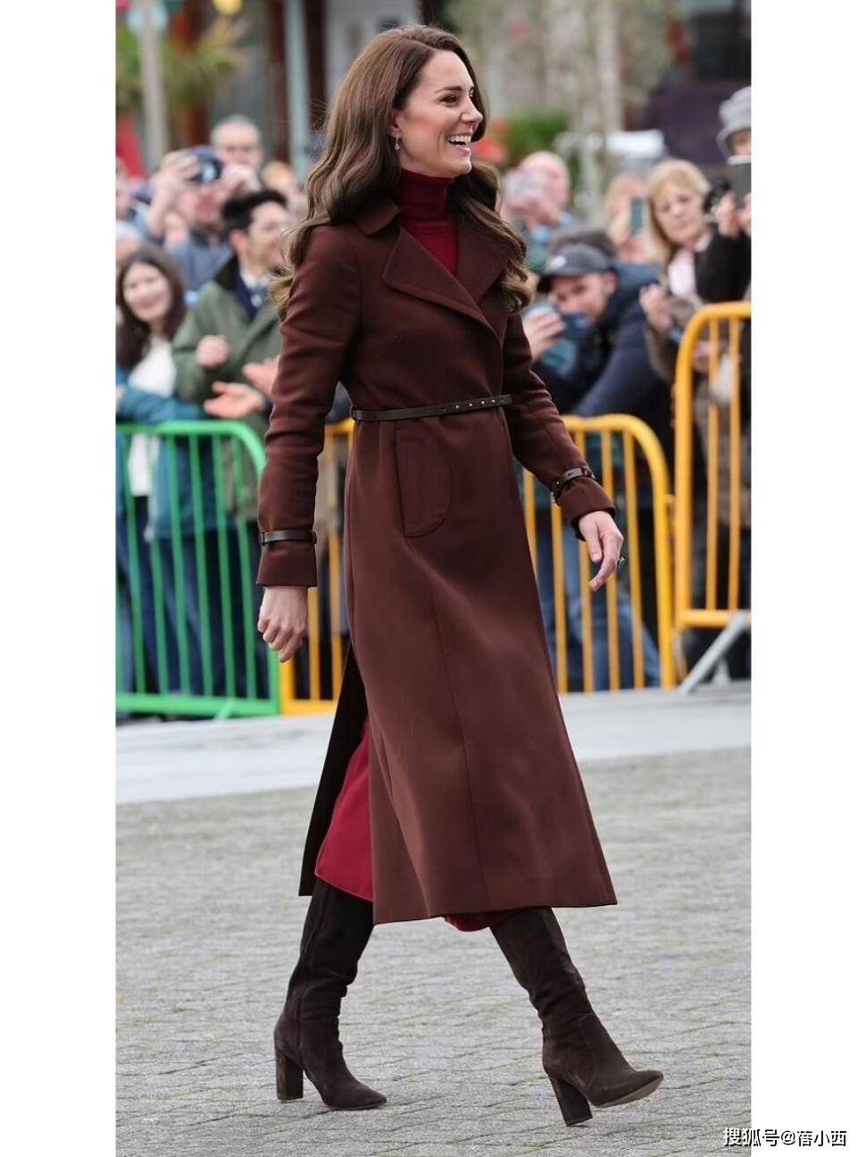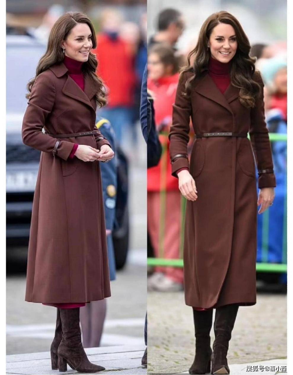 看凯特王妃穿大衣,我悟了:配裙子不配阔腿裤,穿长筒靴才更优雅