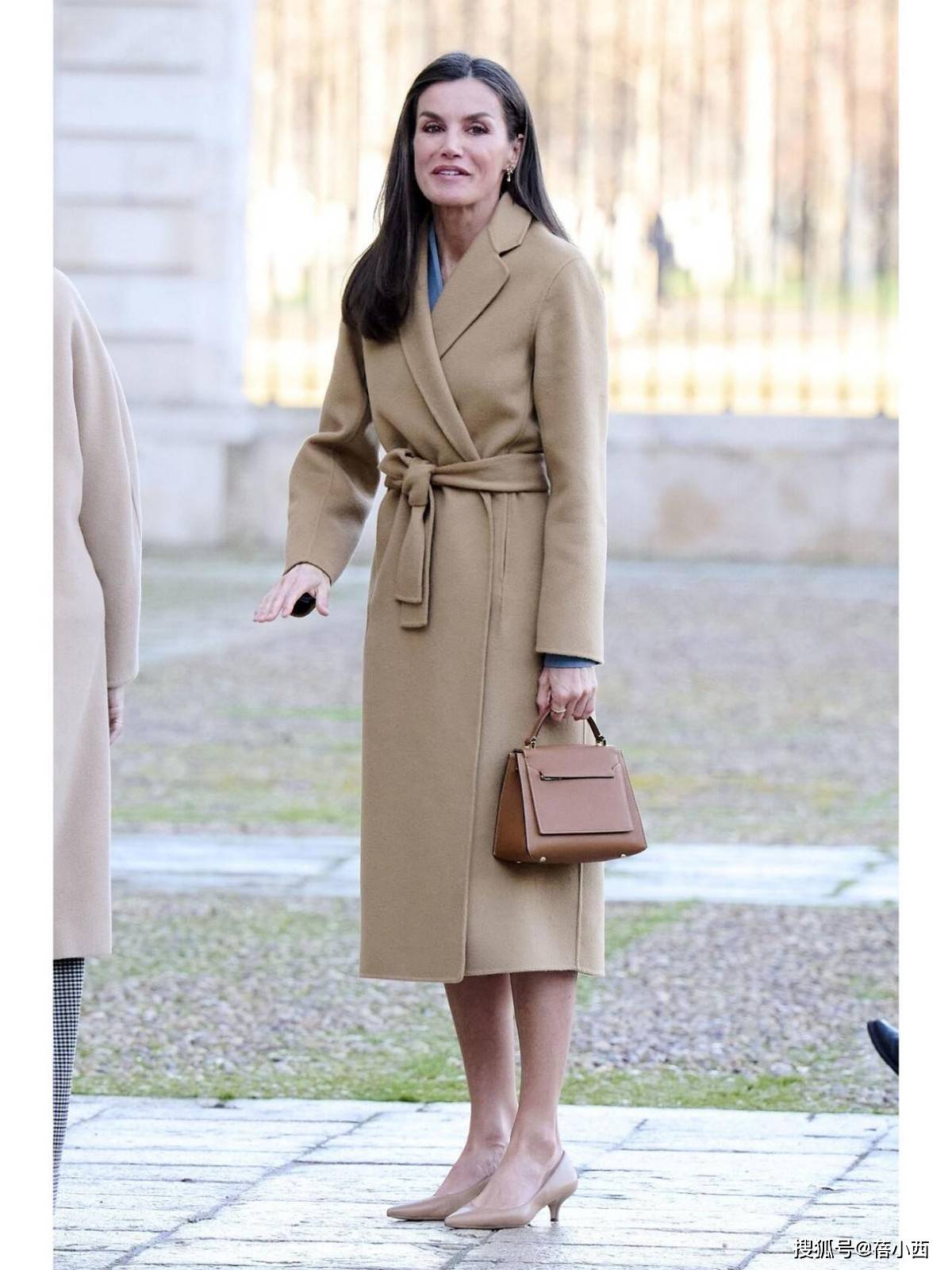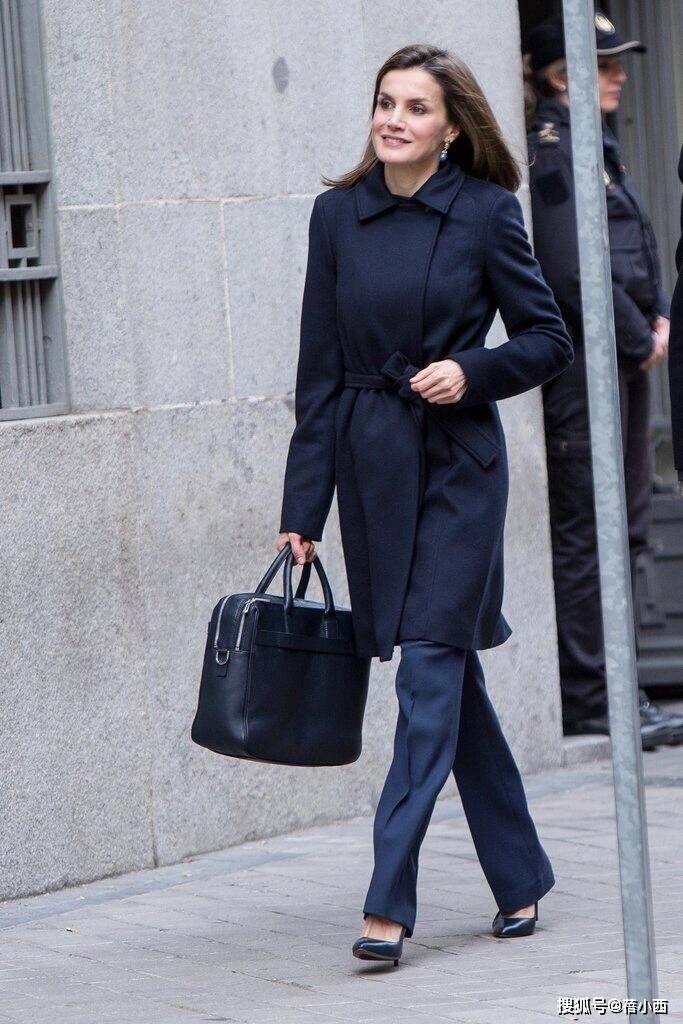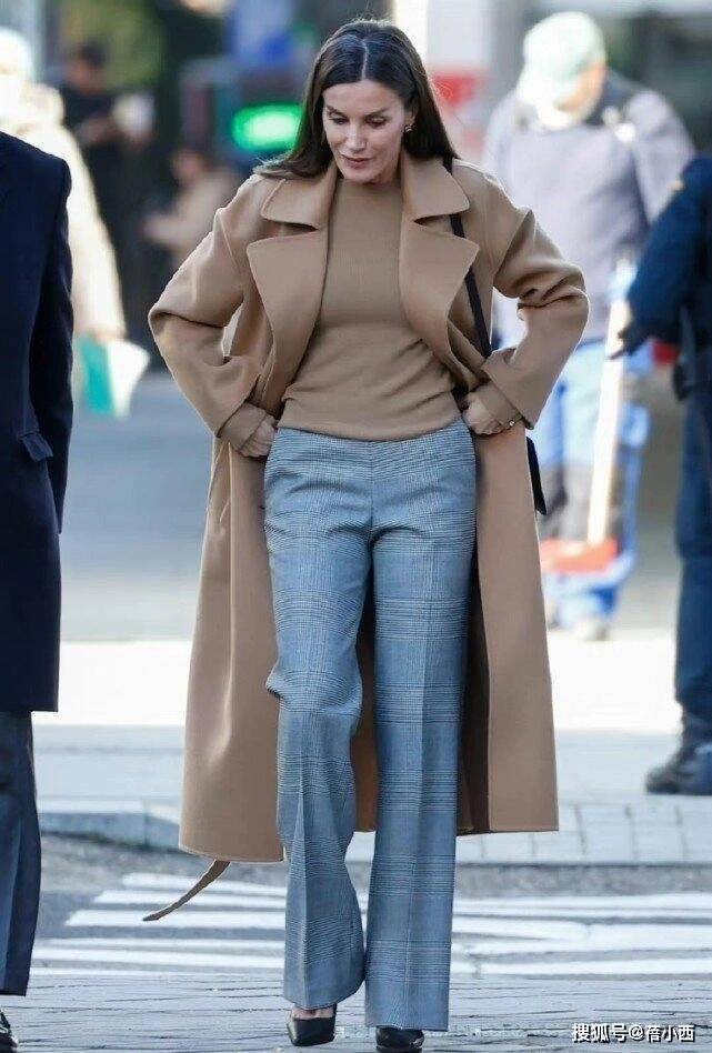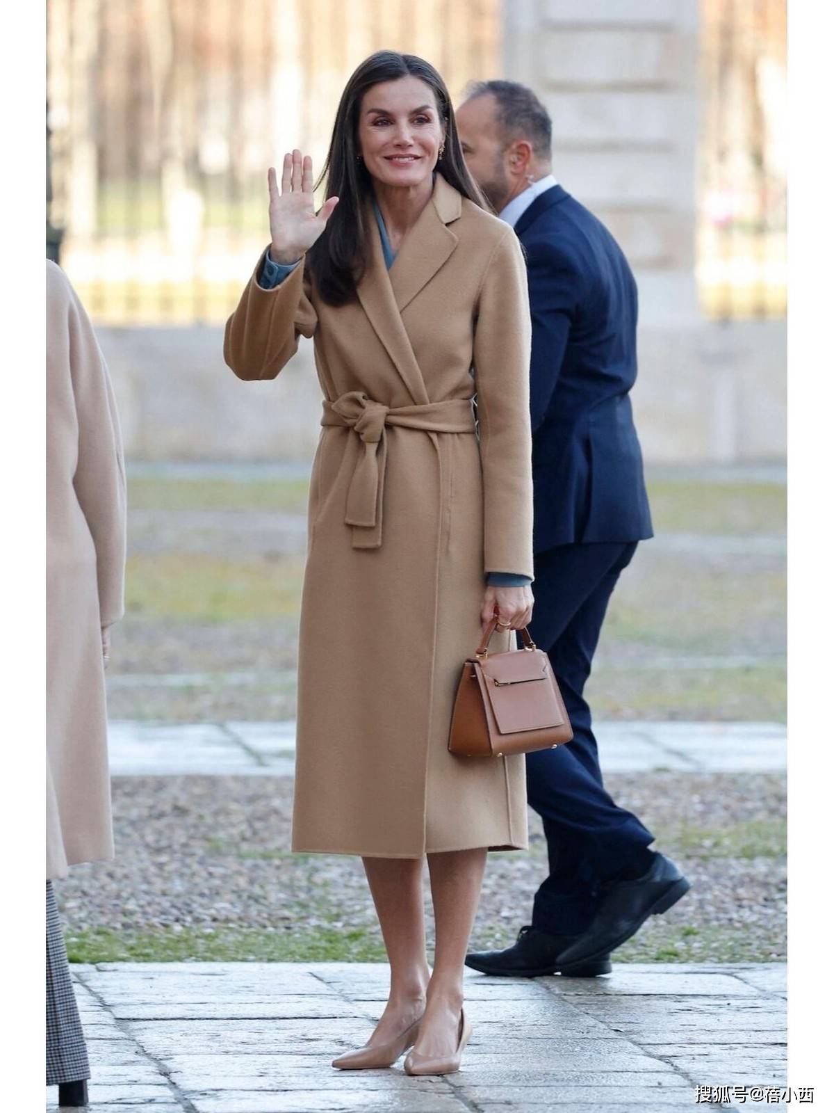 看西班牙王后穿大衣,我悟了:裙过膝,露脚踝,不配牛仔裤才优雅