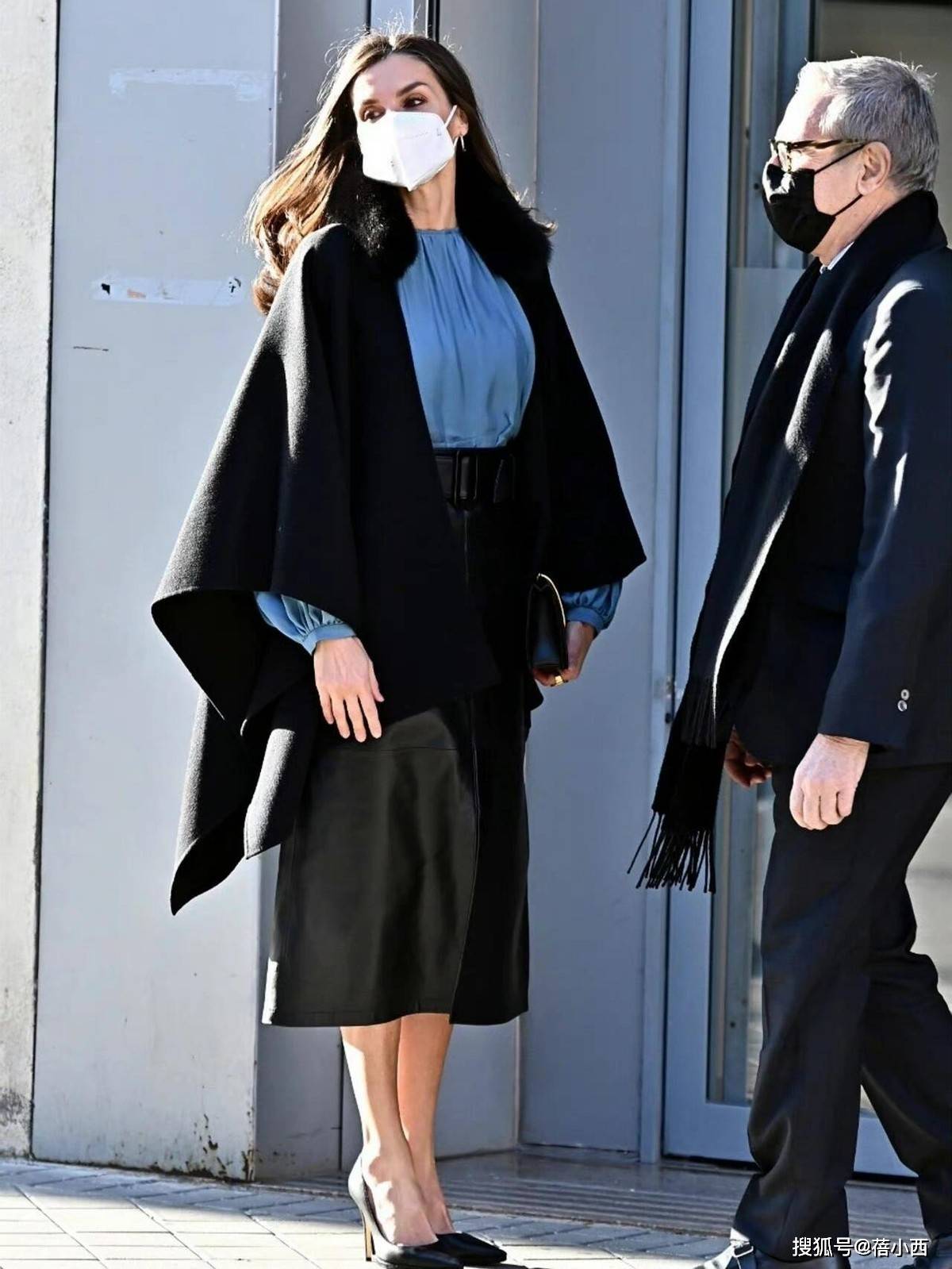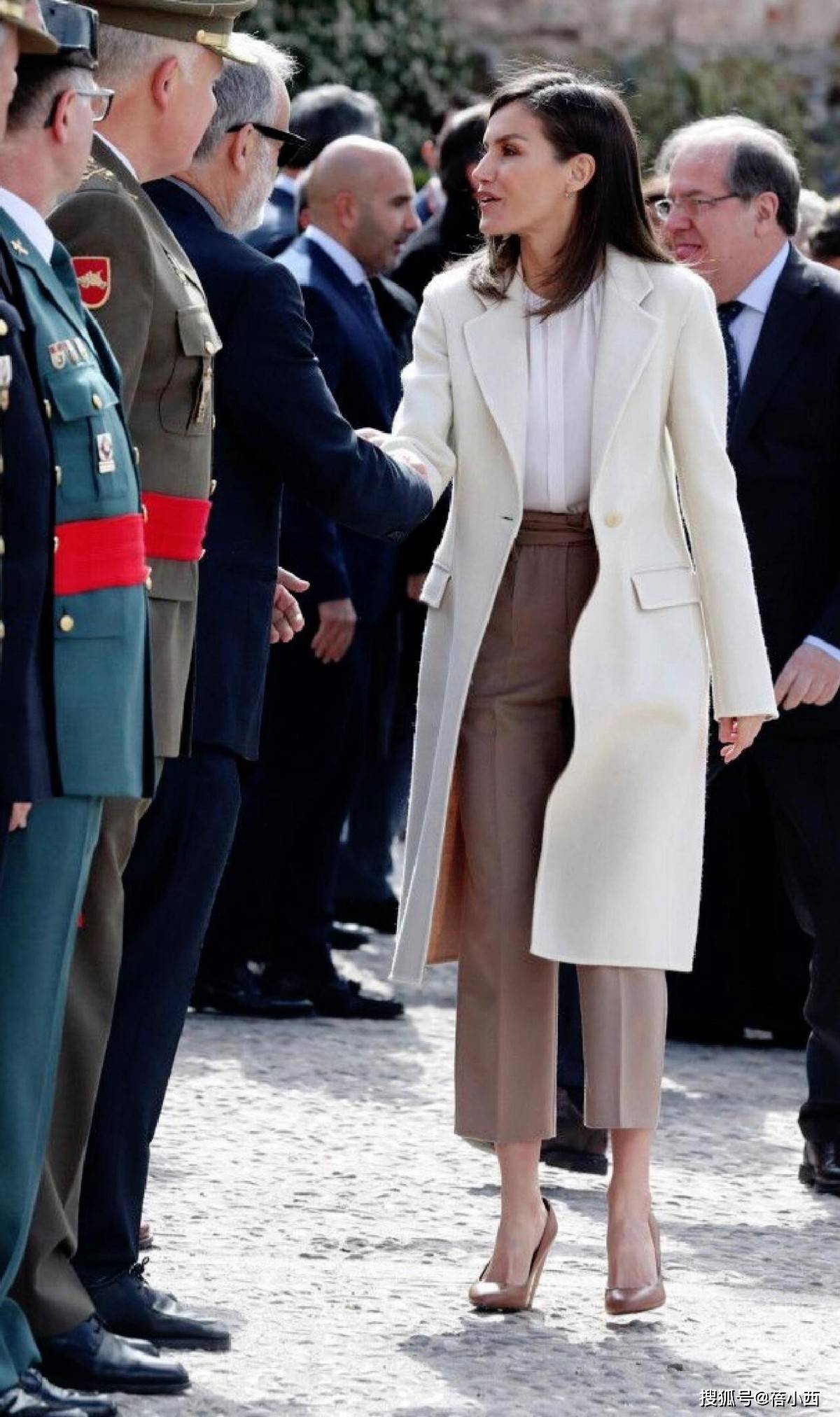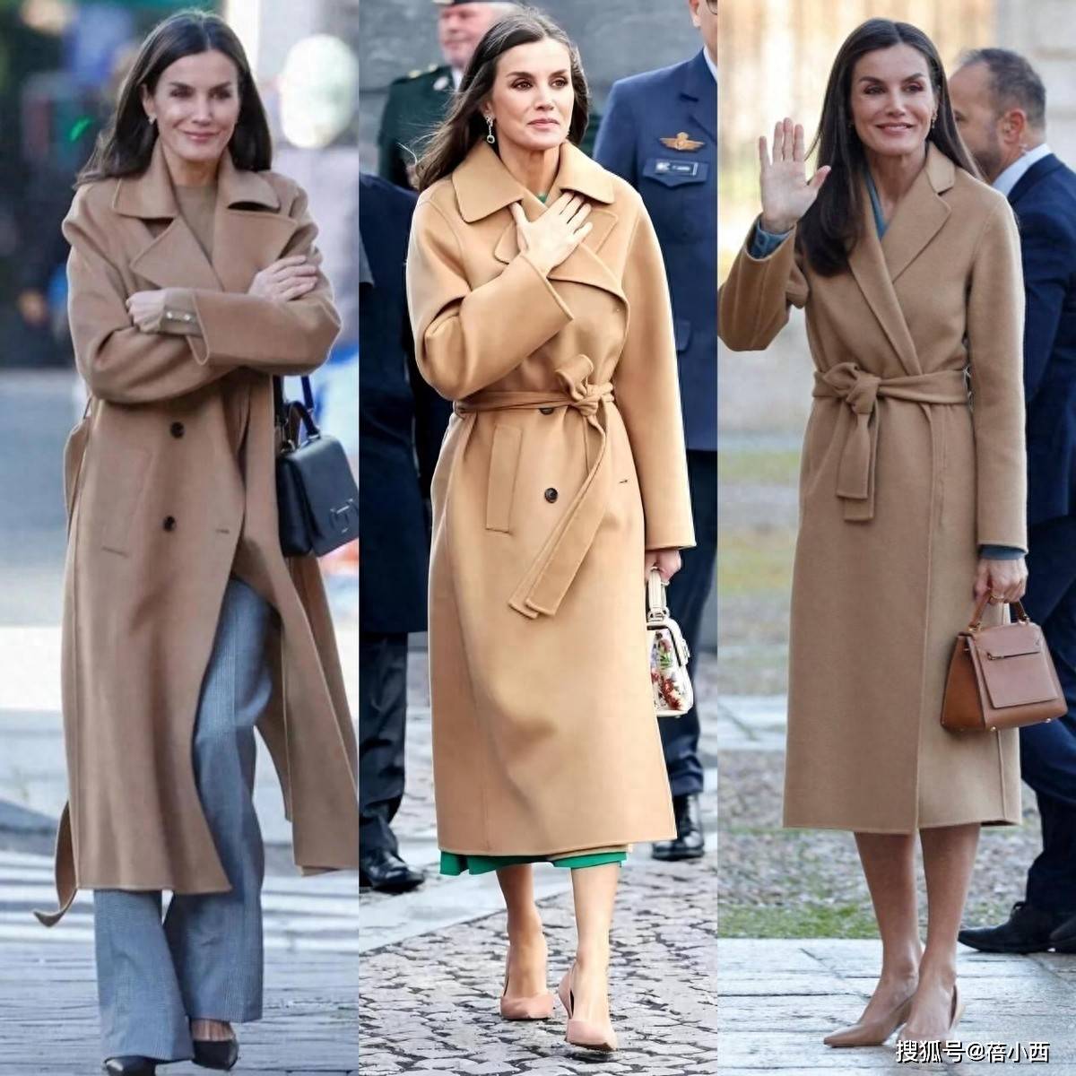 看西班牙王后穿大衣,我悟了:裙过膝,露脚踝,不配牛仔裤才优雅