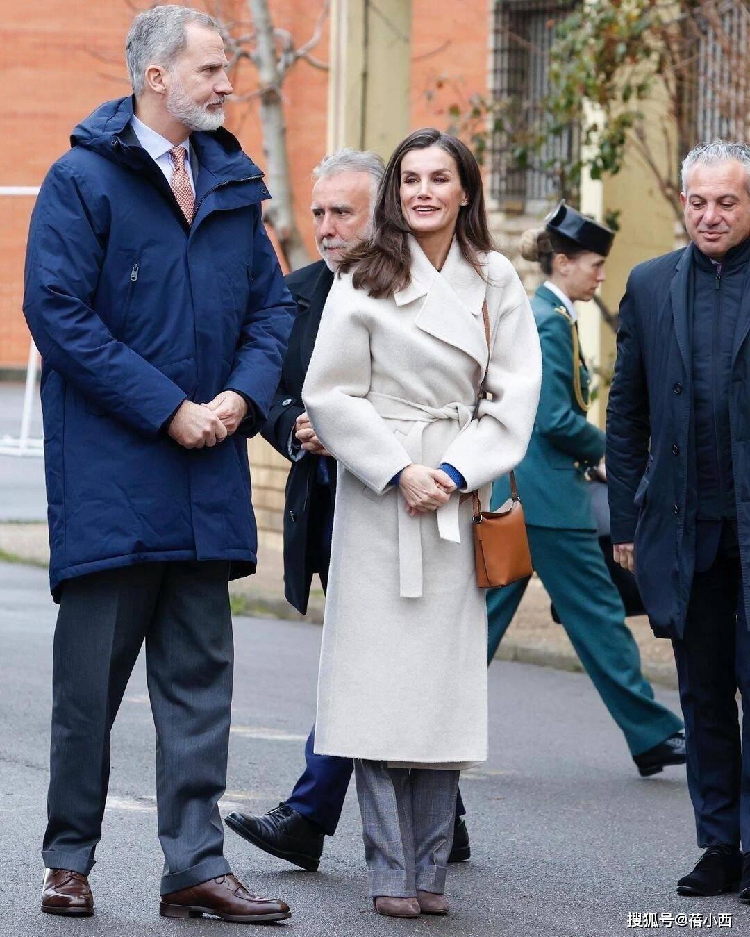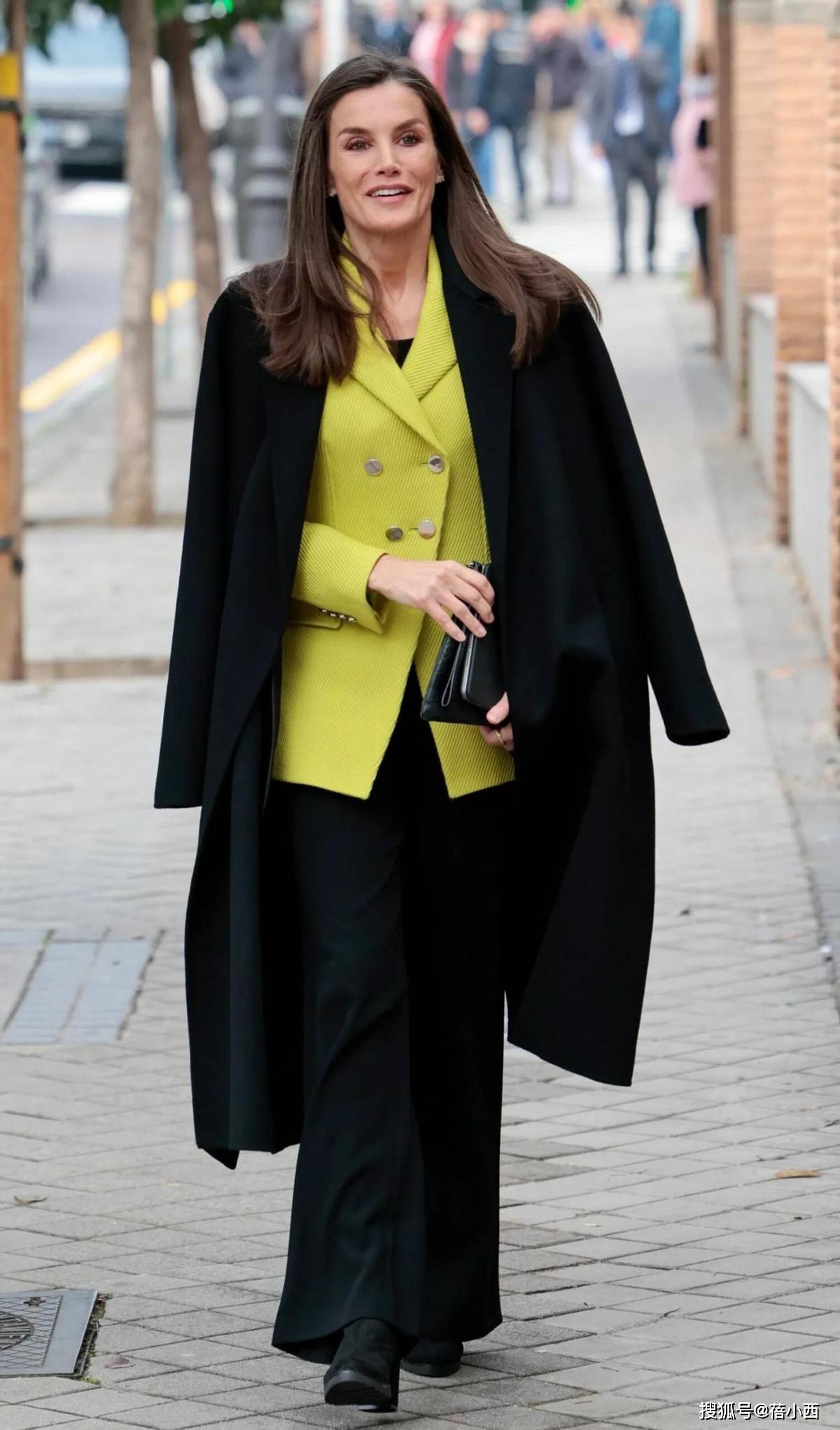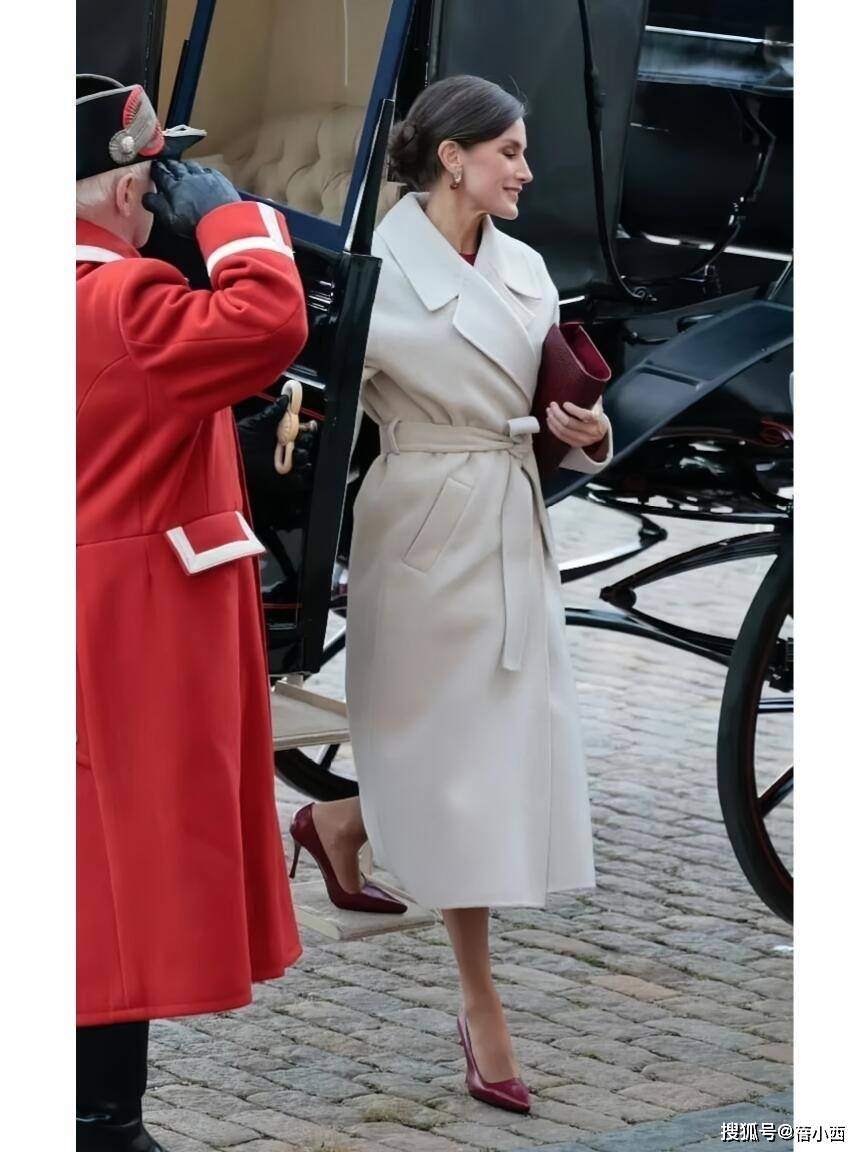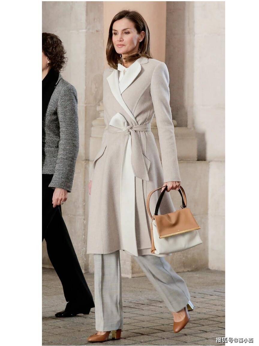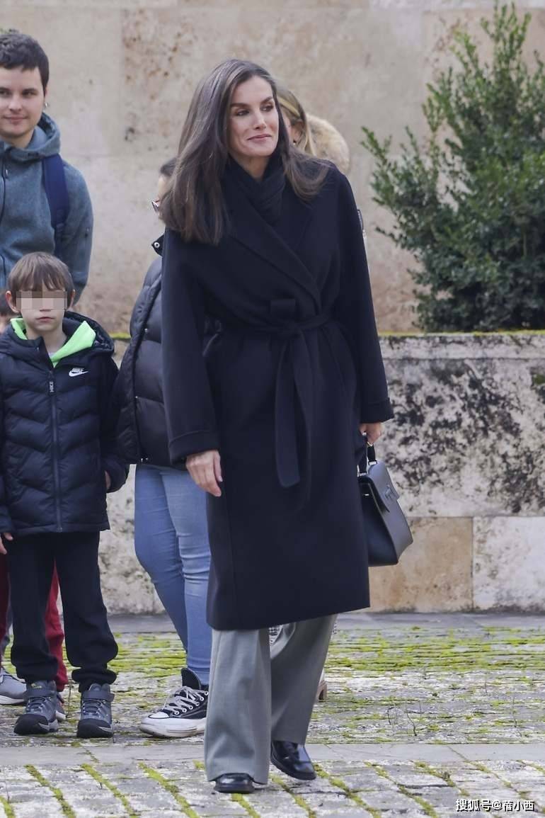 “露脚踝”这一细节,更是让她的大衣穿搭瞬间摆脱沉闷的关键。秋冬穿大衣,很容易因为衣物厚重而显得臃肿拖沓,但莱蒂齐亚王后总能通过露脚踝的小技巧,让造型变得轻盈灵动。