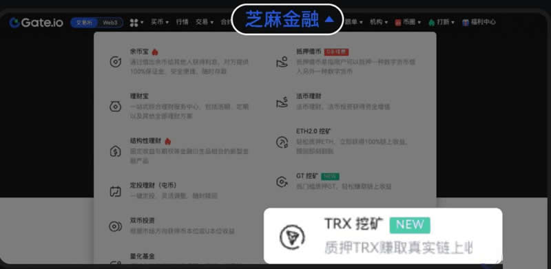 1、首先,访问该平台官网(**建议通过官方渠道注册**),登录后找到“金融”或类似的板块,选择TRX“挖矿”。