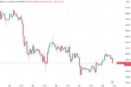 此前,比特币一度跌至周内低点62,400美元,但随后迅速反弹,并成功守住了阵地。目前,比特币的价格在63,500美元附近波动。