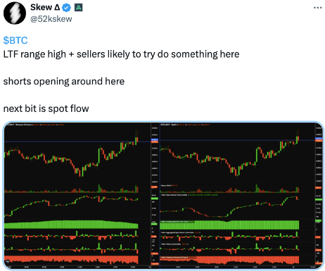 知名交易员 Skew 在社交媒体上表示,尽管山寨币的反弹势头良好,但仍需要突破周一至周二期间通常会形成的高点。他提到了最近的市场模式,并对比特币未来的走势持谨慎态度。