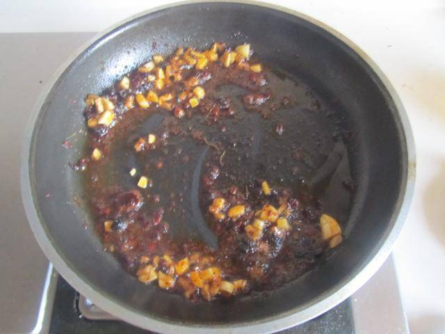 制作过程: 1.烧热锅放入少许油,加入少许郫县豆瓣酱和蒜末放进锅中煸炒出红油;