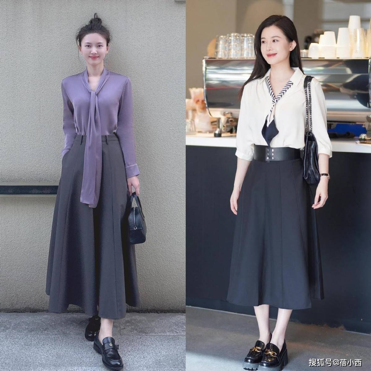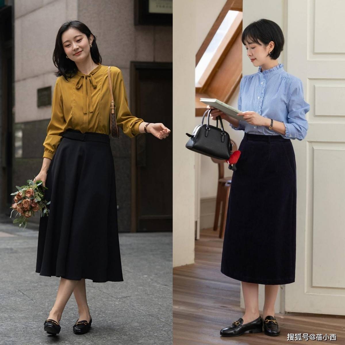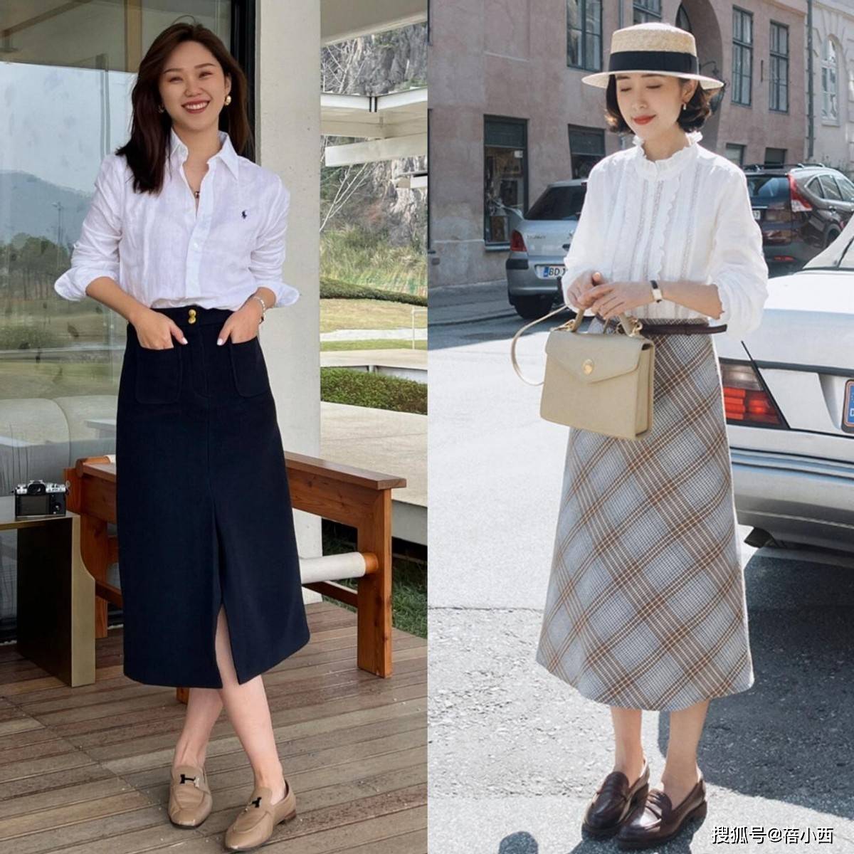 上班族可以用衬衫搭配半身裙,上衣塞进裙子腰间,可以优化比例,再搭配黑色乐福鞋,简单大方还有气质,这种简简单单的搭配比花里胡哨的混搭耐看多了,适合成熟女性。