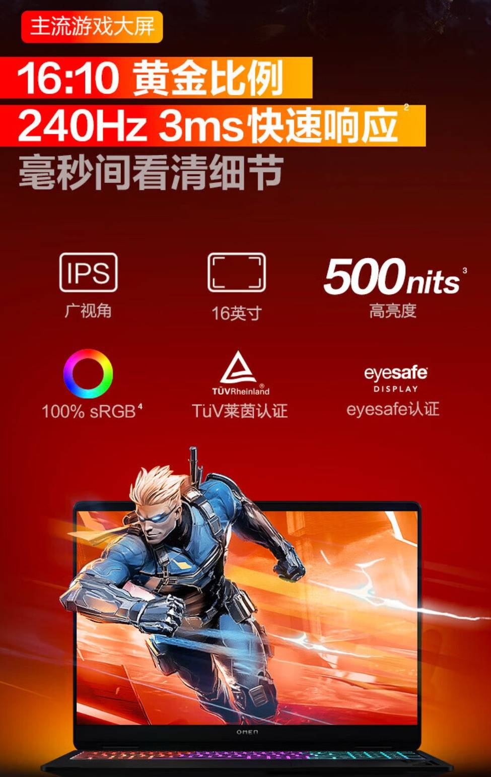 体验上,暗影精灵MAX配备了一块素质极高的电竞屏:2.5K (2560x1600) 的QHD分辨率,16:10的黄金显示比例,带来了更广阔的视野。240Hz的超高刷新率 配合3ms的极速响应时间,让画面如丝般顺滑,彻底告别拖影和撕裂。当你在《无畏契约》中刺激对枪时,对手闪身出掩体的一瞬间,你总能先一步捕捉到动作,完成精准击杀。高达500nits的亮度,即使在户外的强光下也能看清屏幕细节,100% sRGB高色域 则保证了色彩的真实还原。