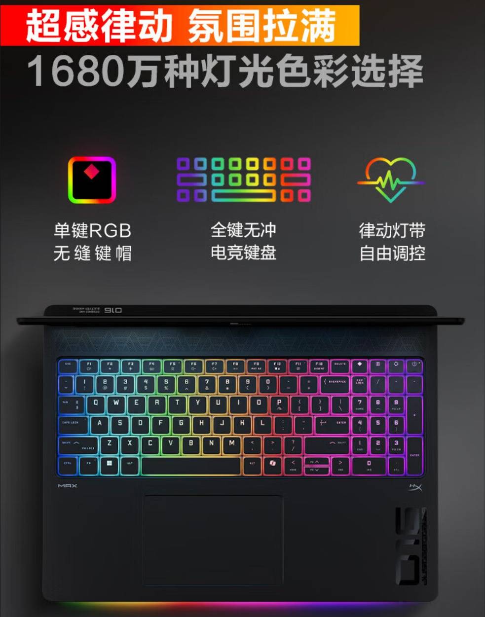 暗影精灵MAX的“颜值MAX”体验,是从你打开B面的那一刻开始的。C面键盘采用了无边框高透光键帽设计,四分区的RGB背光透过键帽,在桌面上洒下迷人的光影。这不仅仅是为了炫酷,更是为了营造沉浸式的游戏氛围。想象一下,在一个宁静的夜晚,你启动了《赛博朋克2077》,键盘背光自动切换为迷幻的霓虹色调,每一次指尖的敲击,都仿佛在与夜之城同频共振。全键无冲的设计确保了你在最激烈的对抗中,每一个操作都能被精准识别,灯光与操作的完美结合,这才是硬核玩家应有的“电竞仪式感”